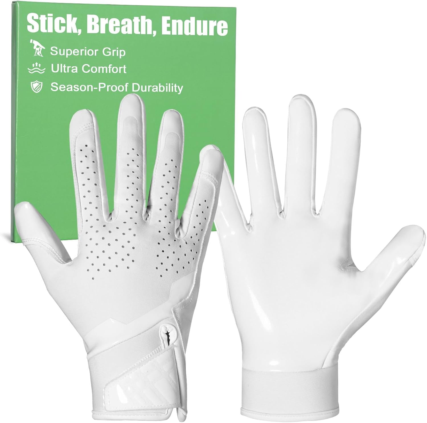 RIGWARL Football Gloves Adult Youth, White Black Flag Football Receiver Gloves with Super Sticky Grip, Ultra Breathable Durability for High Game Performance Gifts