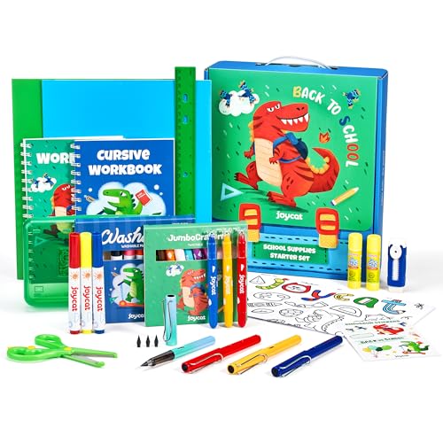 46-Piece Washable Back to School Supplies Gift Kit for Kids-Dinosaur Essential First Day Gift Set for Kindergarten & Elementary, Art Supplies & Refillable Tools, Ideal Kids Stationery Set for Boys.