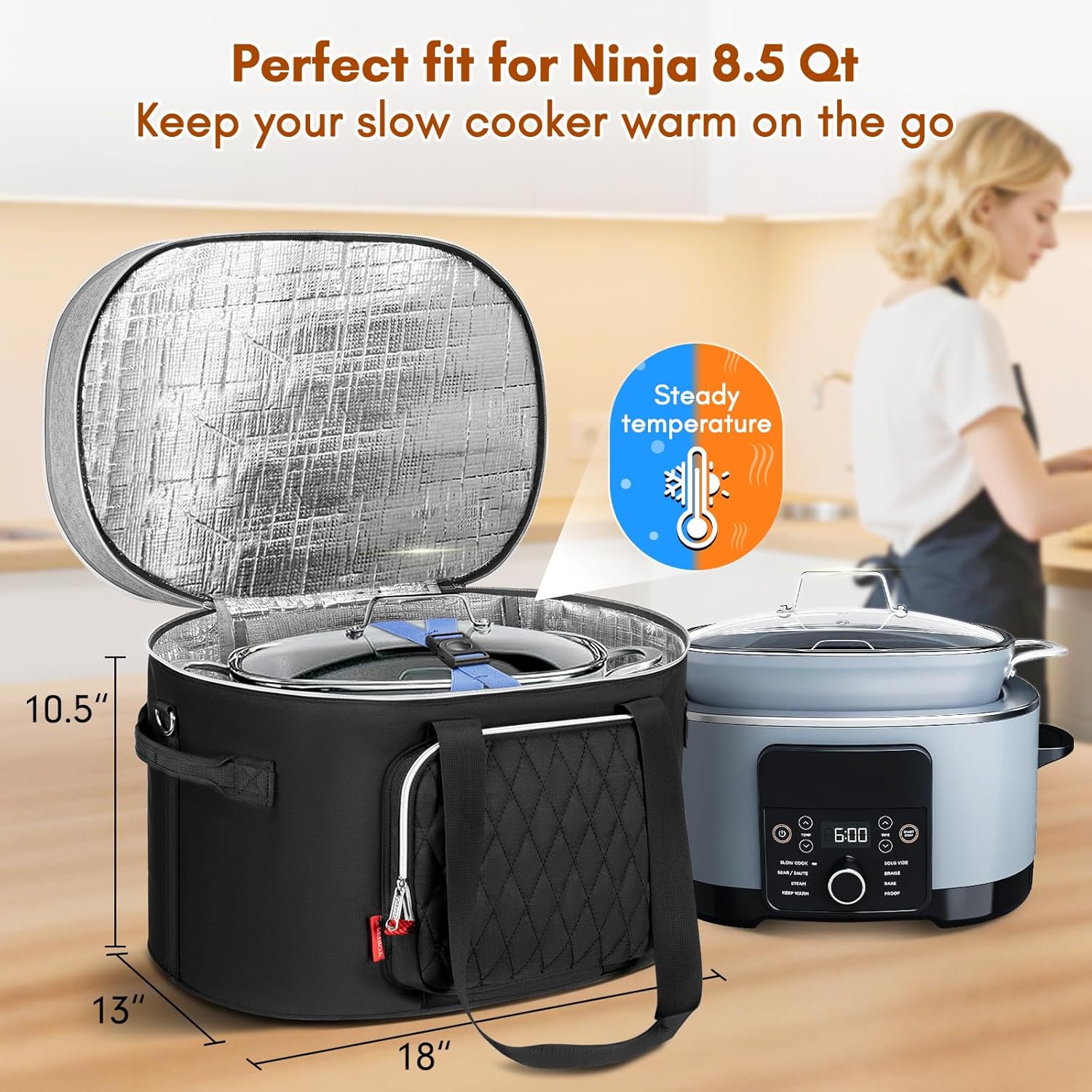 Perfect Compatibility: Carrying case for Ninja Crockpot 8.5 quart slow cooker, compatible with Ninja Foodi Possible Cooker Pro series (MC1001/MC1000/MC1010); Fits for most Ninja crock pot slow cookers and portable slow cookers; Size: 18"L × 13"W × 14"H