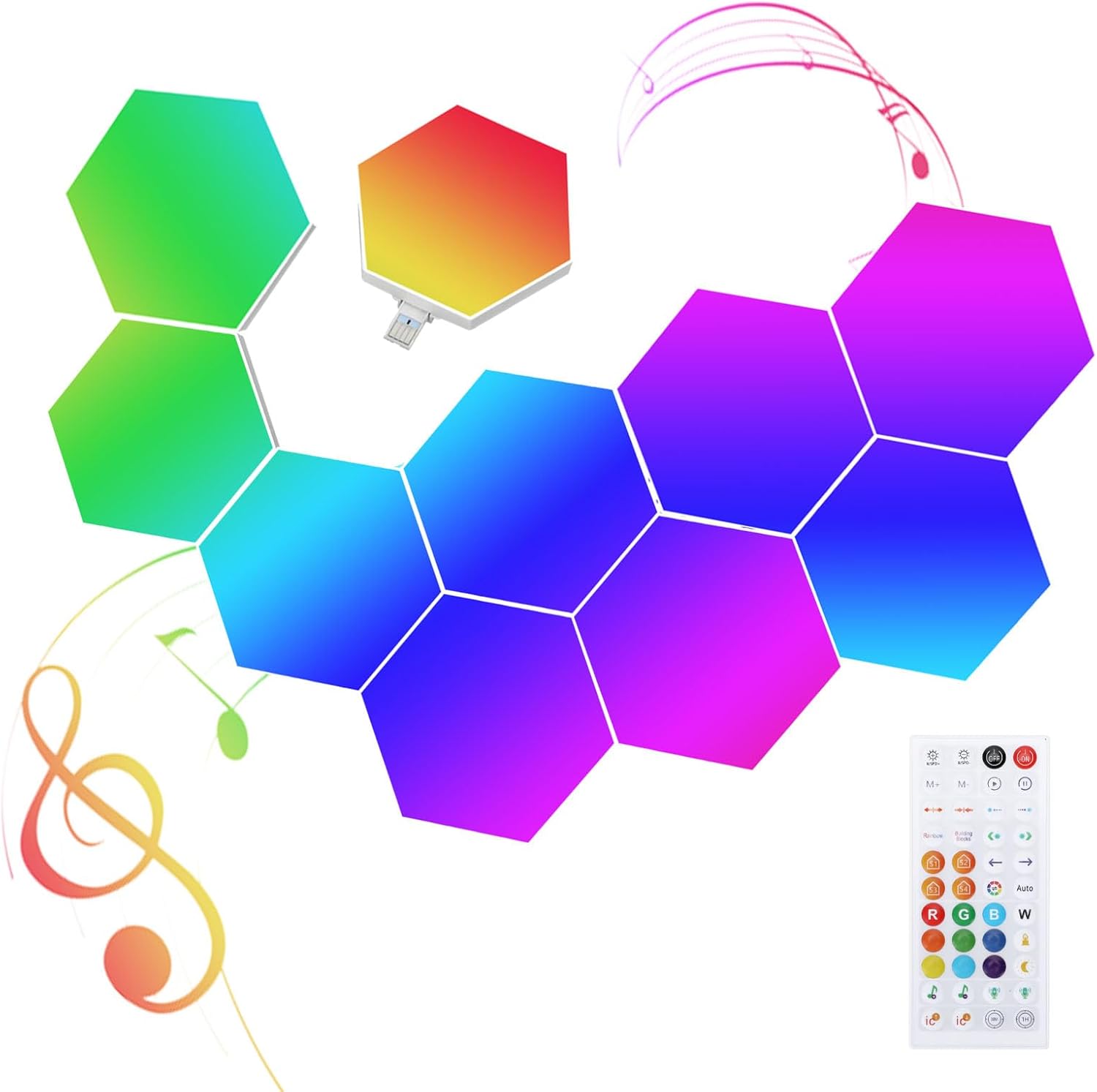 10 Rgb Hexagon Lights: With included remote control, you have over 16 million colors at your fingertips, create any ambiance imaginable with hexagon lights. Enjoy the magical moments with cool gaming hexagon lights.