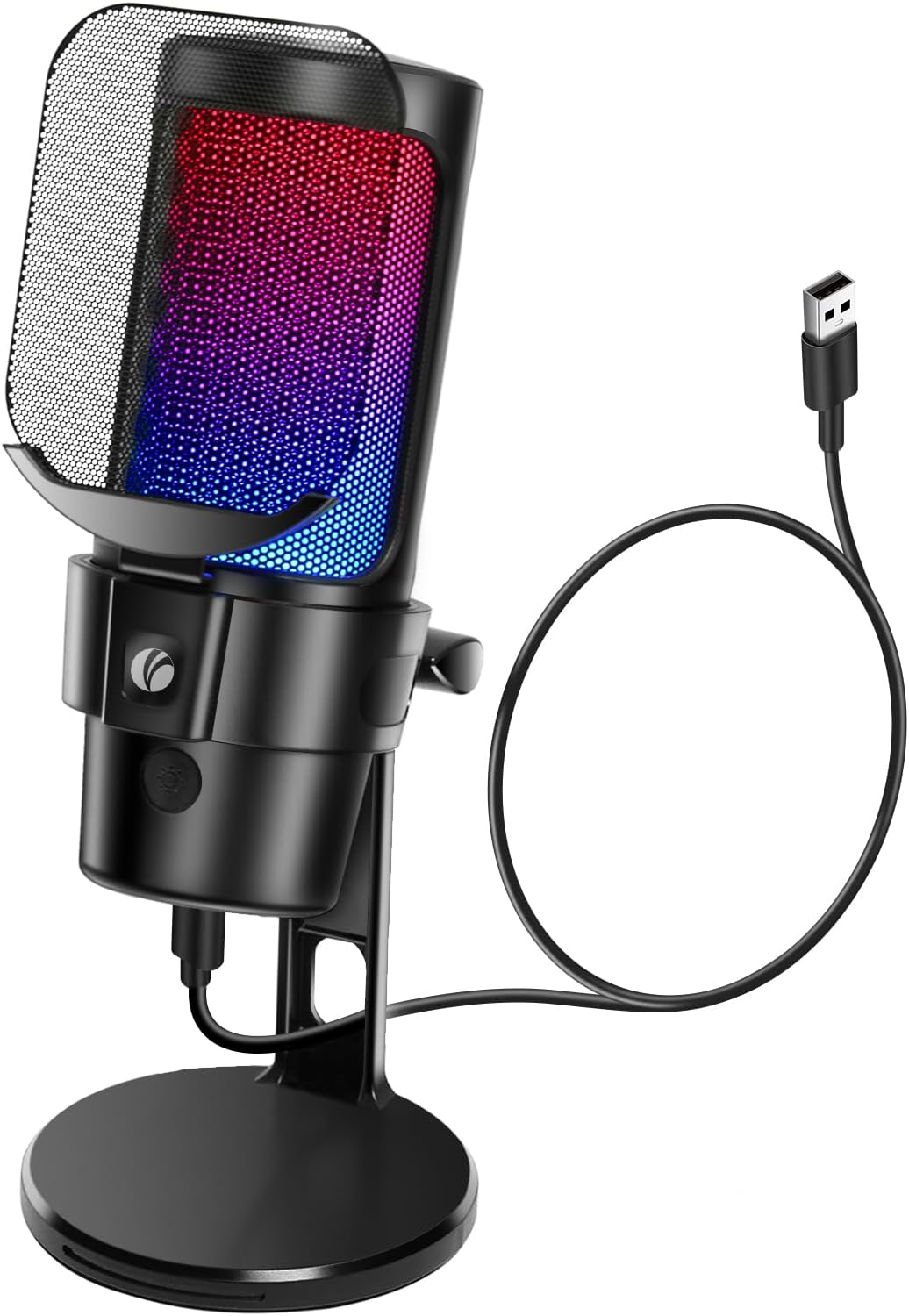 VCOM Gaming USB Microphone, Condenser Dynamic Mic for Podcasting, Streaming, with Quick Mute, Desktop Stand, Pop Filter, RGB Indicator, Shock Mount, Rotate gain Button, Compatible with PS4/5/PC