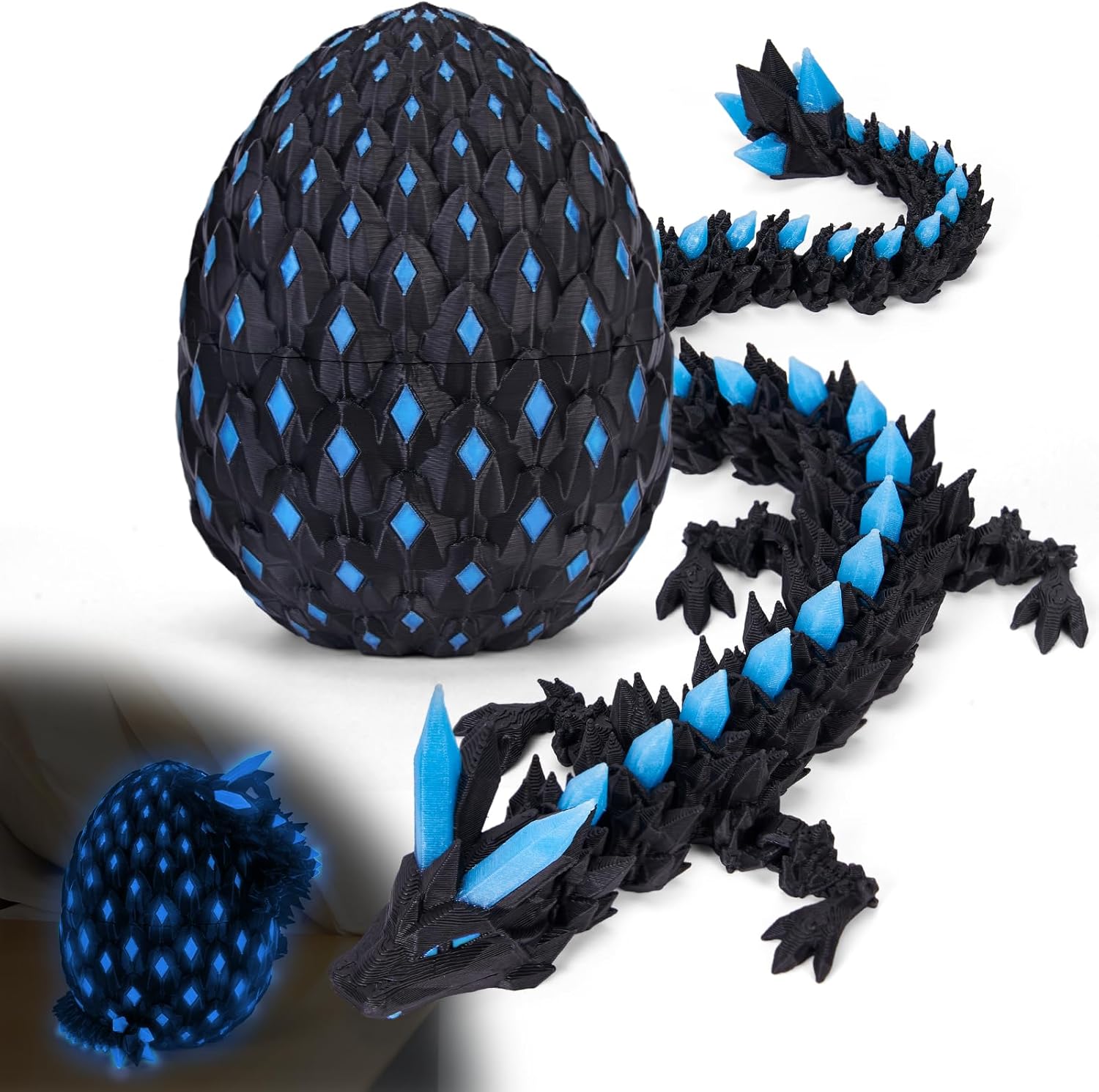 3D Printed Dragon Eggs Mystery Dragon Egg Glow in The Dark Articulated Animals Fidget Toy Cool Crystal 3D Print Dinosaur Toys Dino Eggs for Boys Girls Teens