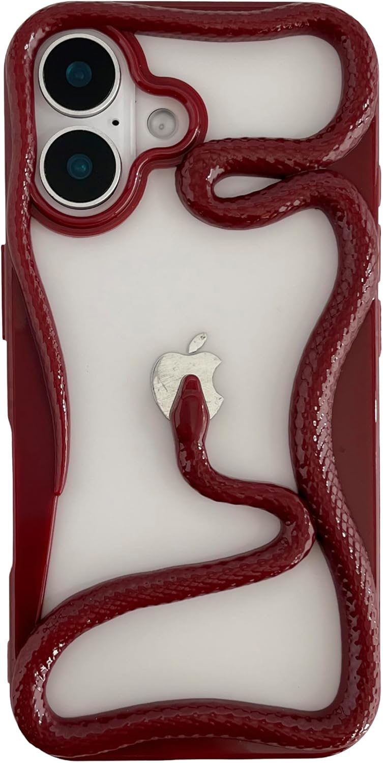 Cute Cool Hollow Solid Color 3D Snake Heat Dissipation Soft Phone Case Compatible with iPhone Case(Red,for iPhone 15 Plus)