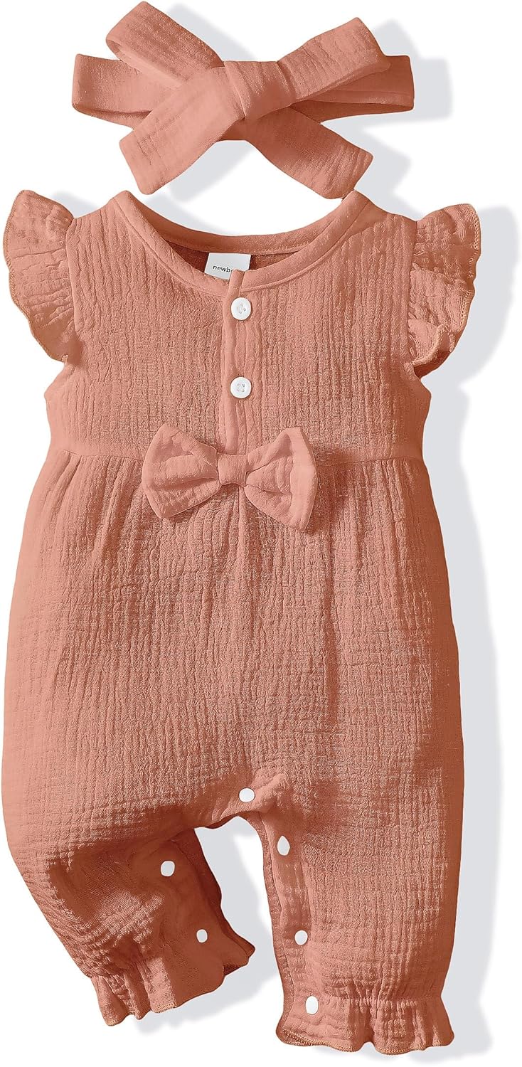 Renotemy Baby Girl Clothes Romper Infant Summer Bodysuit Outfits Cotton Linen Jumpsuits Newborn Essential Preemie Clothes