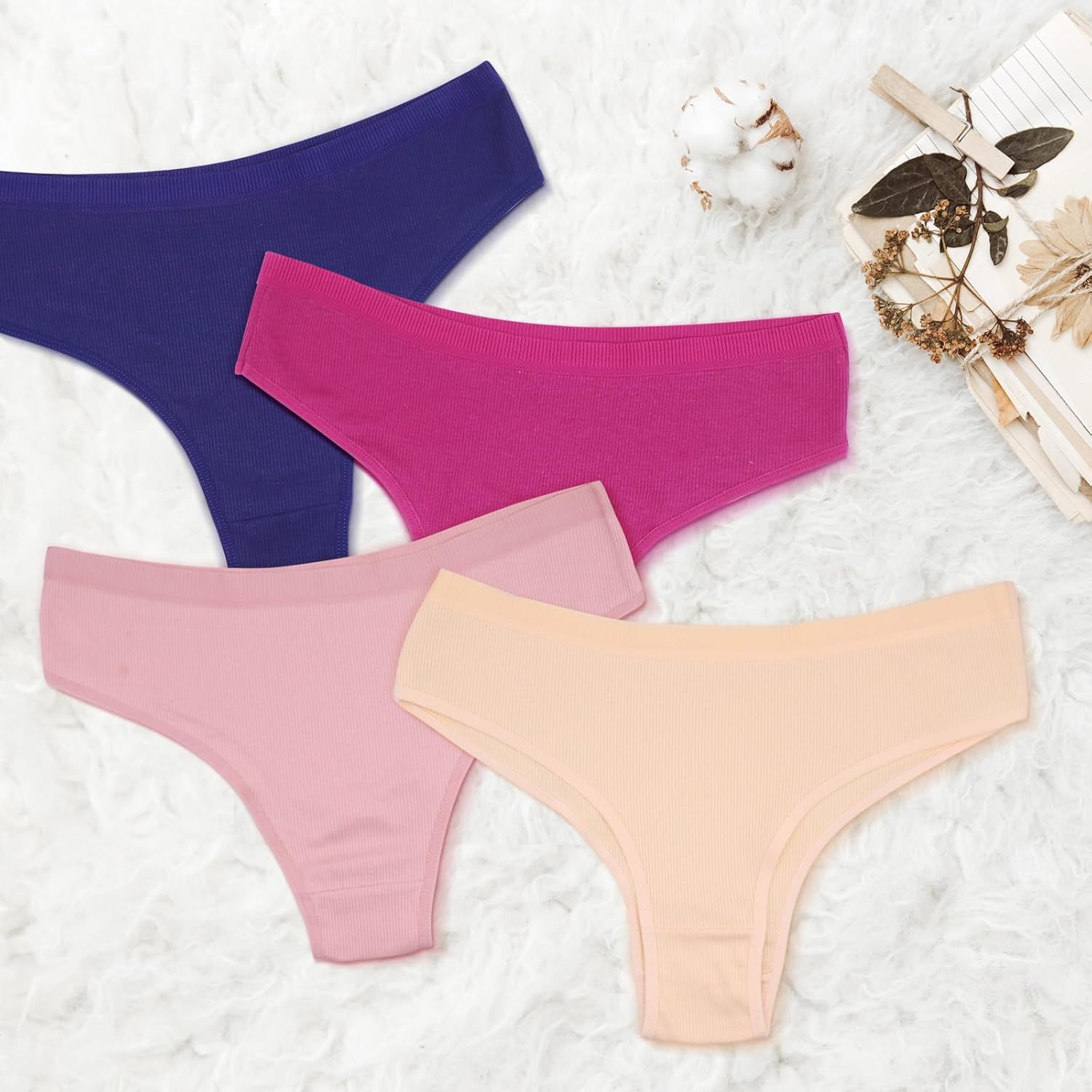 7 Pack Cotton Underwear for Women Sexy Low Rise Ribbed Hipster Breathable Soft Bikini Panties Cheeky