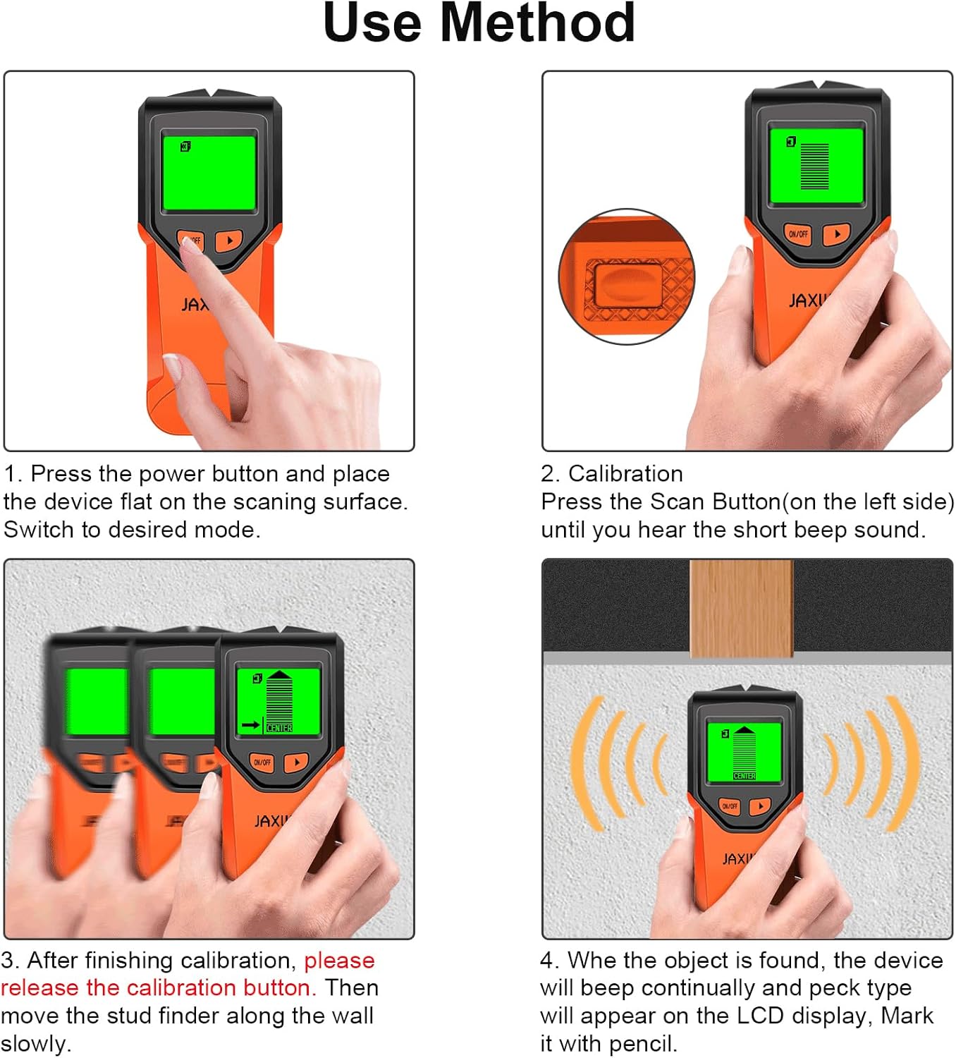 Wide Use: our wood detector for wall is a versatile, reliable, and tool that can make any job more efficient and effective. This stud detector quickly locates wood, metal, and AC wires hidden in the walls, floors, and ceilings of the house. Helping you avoid danger when hanging and installing TV mounts photo frames, wall cabinets, garage racks, shelves, bathroom handles and other decorations. Give the gift of convenience and comfort with this practical gadget