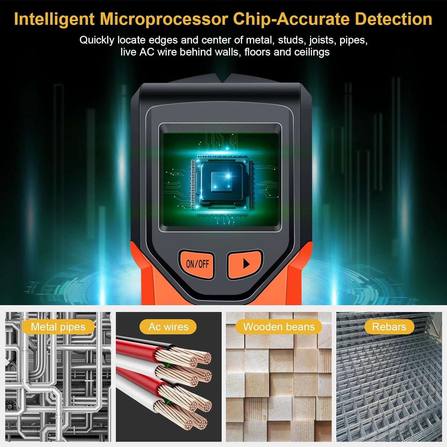 Accurate and Rapid: The wall stud finder adopts an intelligent micro-sensor chip with the highest sensitivity which can accurately and quickly find edges and center of metal, studs, joists, pipes, and live AC wire behind walls, floors, and ceilings. Fast detection saves users time and effort, making task completion easier. It must be ultimate gifts for professionals, homeowner,s and DIY enthusiasts