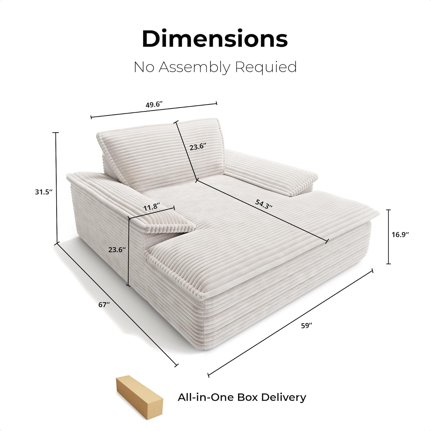 LIKIMIO 59'' Oversized Chaise Lounge Chair Sofa Bed - Plush Corduroy Upholstered Reading Chair, Cloud Couch for Living Room, No Assembly (Beige)
