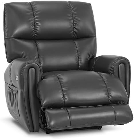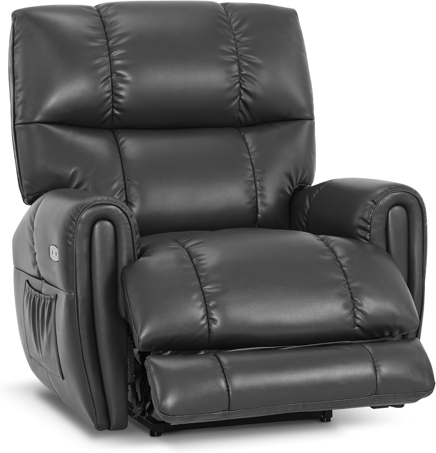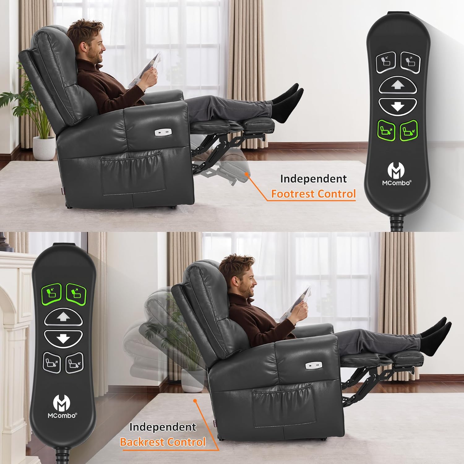 MCombo Lay Flat Dual Motors Recliner for Adults, Leather Oversized Power Recliner Chair with Heat and Vibration, Infinite Position, USB and Type C Ports, 6199 (Dark Grey)
