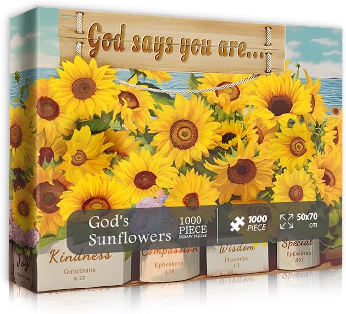 Christian Puzzles for Adults: Immerse yourself in the beauty of this religious puzzles for adults 1000 pieces. Featuring the vibrant sunflower theme is combined with positive and inspiring words to show the beauty and inspiration of life