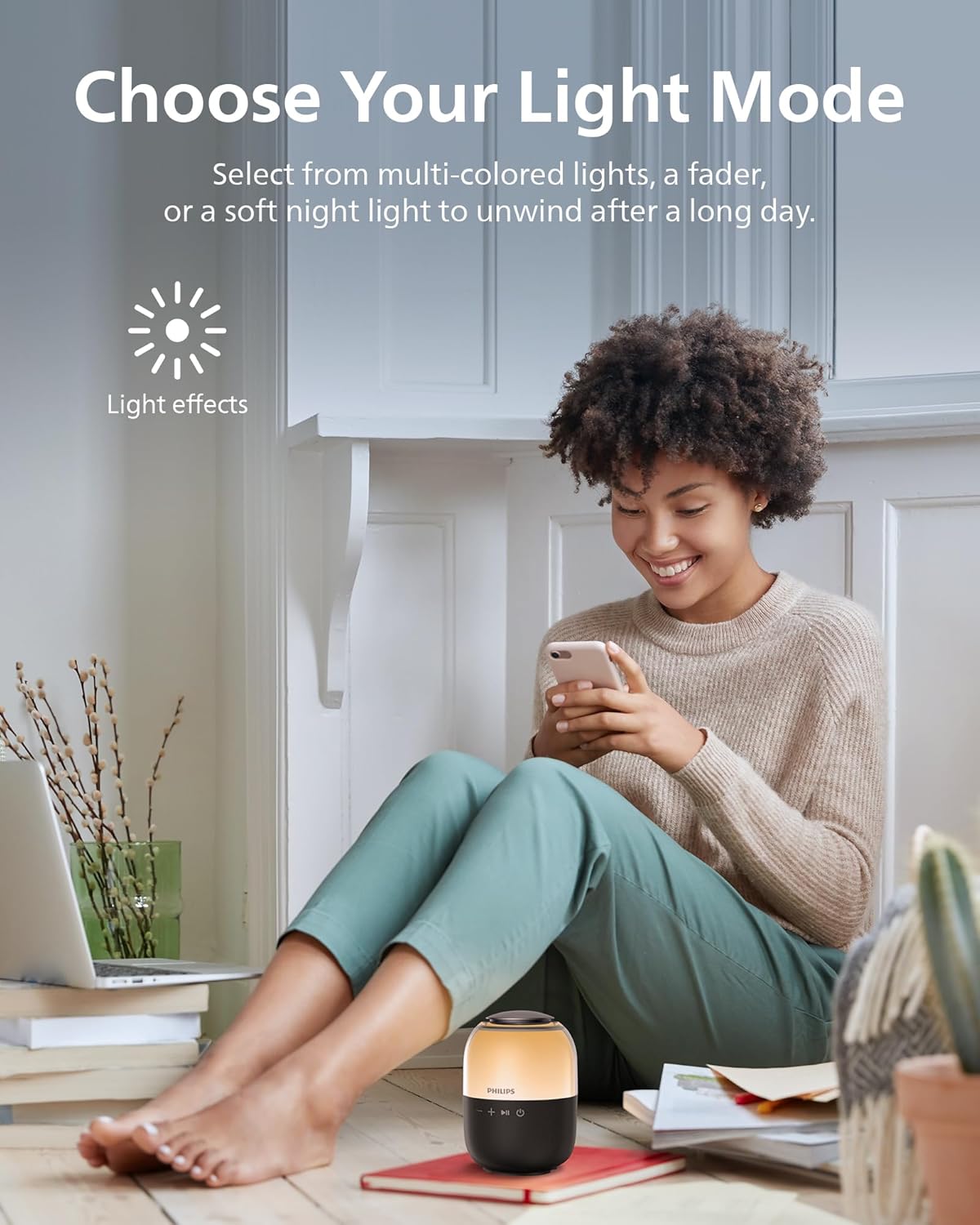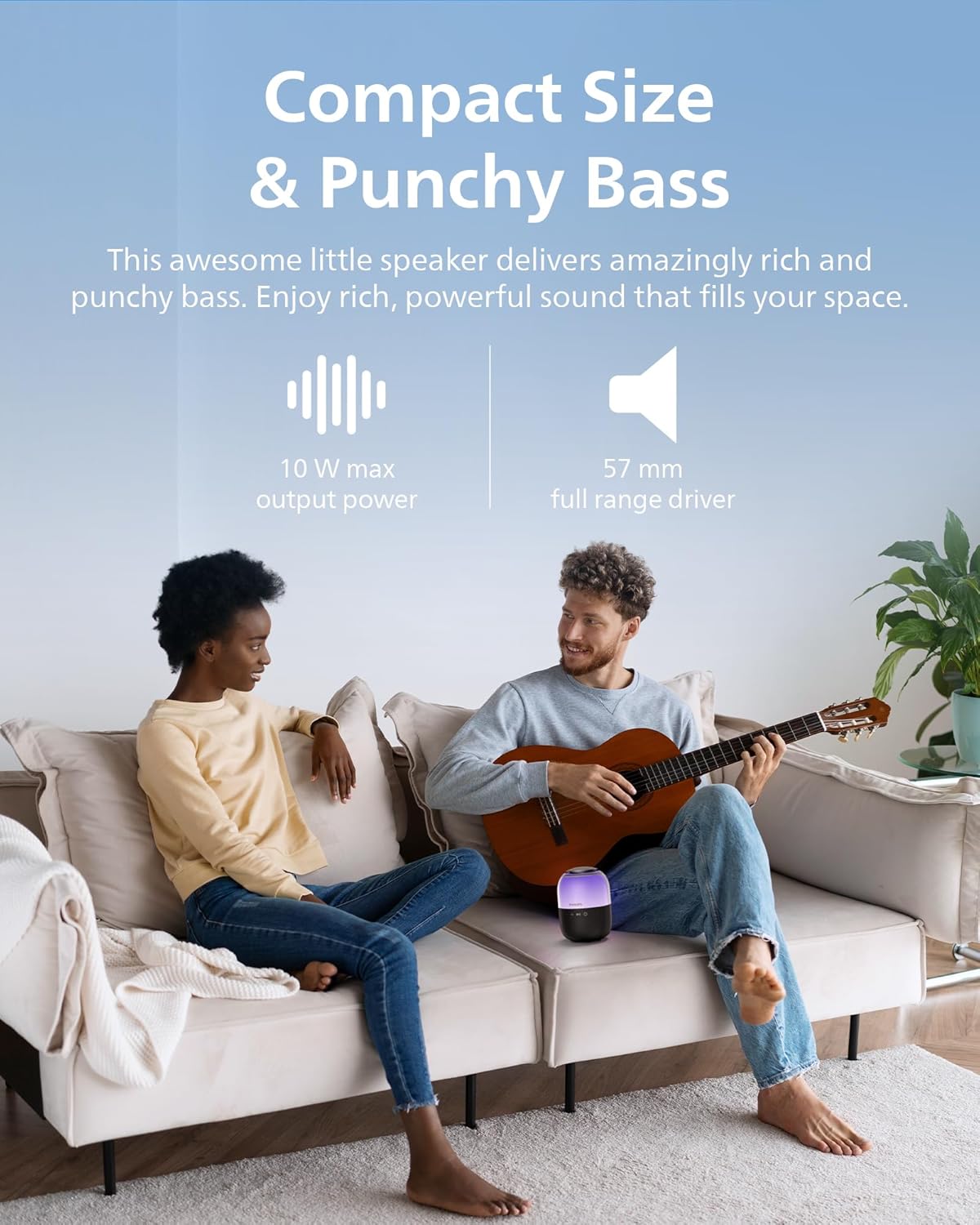 Philips S2108 Portable Bluetooth Speaker, 5W RMS, 7H Playtime, TWS Stereo Pairing, LED Light Effects, USB-C Charging – Punchy bass, Compact Wireless Speaker for Home, Outdoor, Travel
