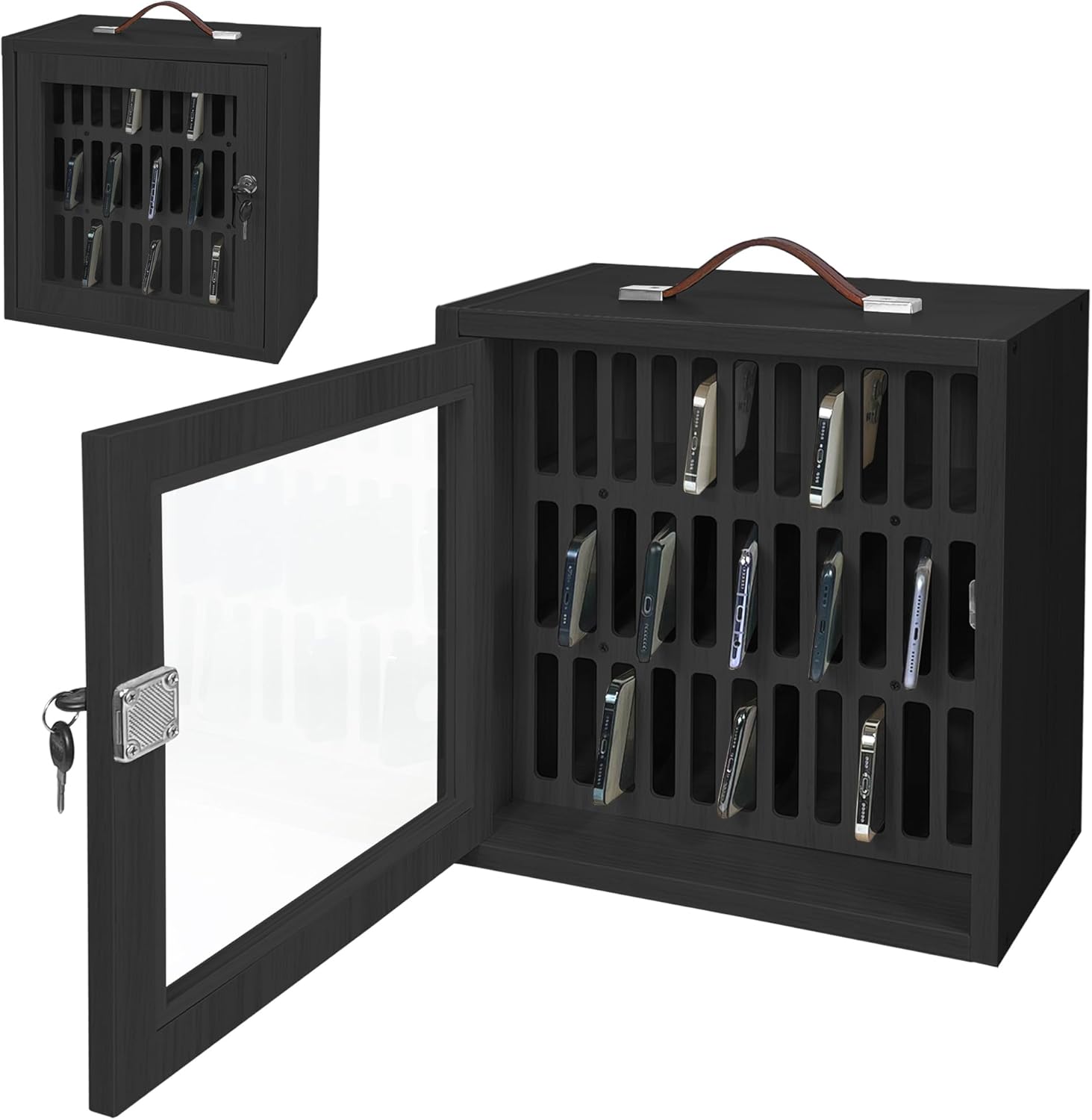 Cell Phone Holder Classroom 33 Slots Wooden, Pocket Chart Storage Cabinet with Handle and Security Lock for Cell Phone, Phone Lock Box for Classroom, Black