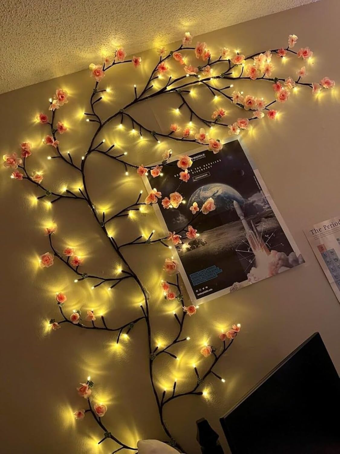 🌸【Romantic Cherry Blossom Lights】Use these cherry blossom light strings to turn any space into a charming resting place! Their flexible branches are perfect for bedrooms, living rooms, or outdoor environments, bringing endless creative possibilities - they can be hung on walls, mirrors, headboards, shelves, or used as photo backgrounds. Whether you want to create a romantic bedroom atmosphere, wedding decoration, cozy living room atmosphere, or stunning Instagram background, these light strings can add a warm and romantic atmosphere to your space.