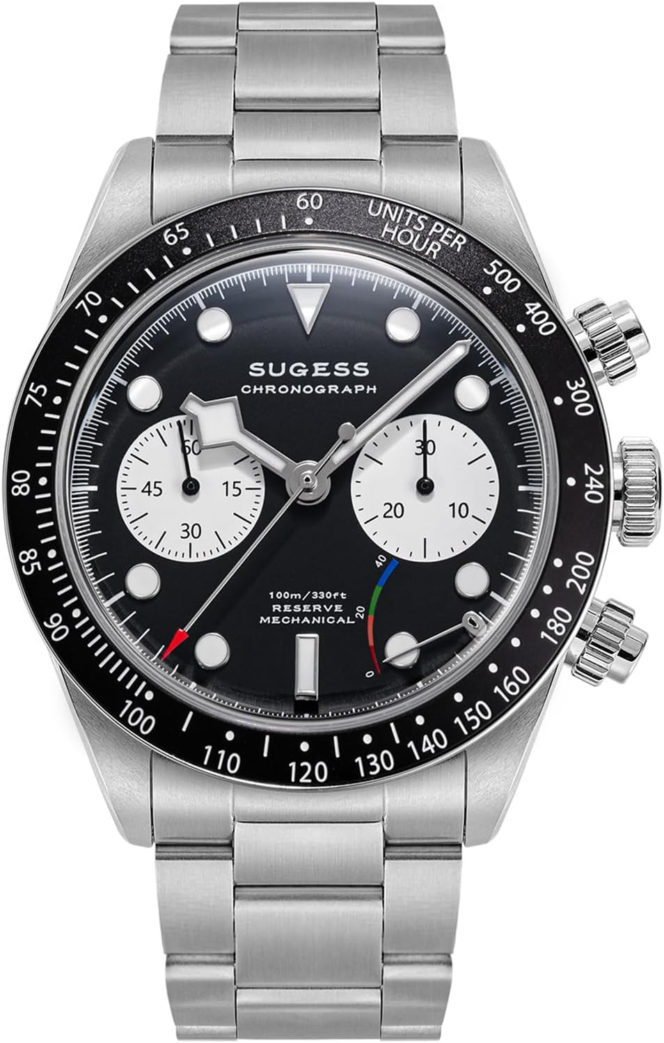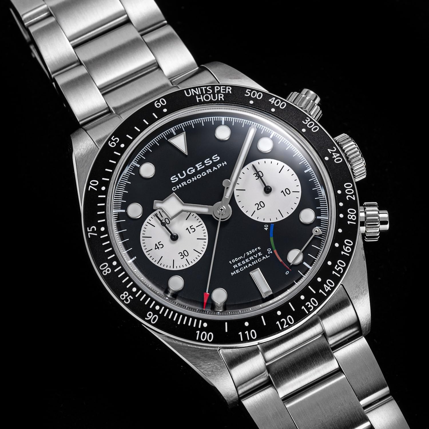 Sugess Seagull ST1907 Panda 41mm Black Power Indicator Chronograph 1963 BNIB