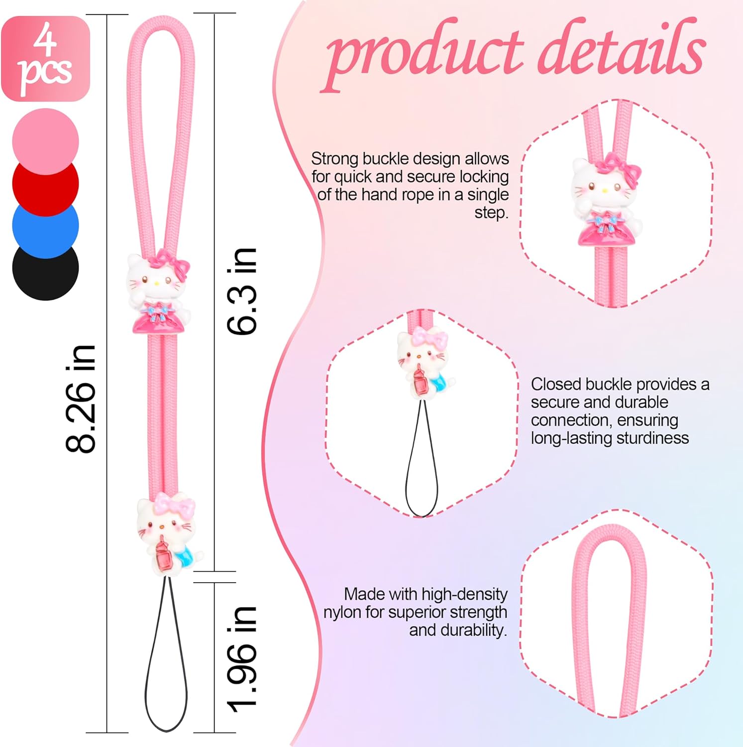 Phone Charm Wrist Strap - 4Pcs Adjustable Nylon Wristlet Lanyards with Cute Cartoons - for iPhone Cases Cameras Keychain