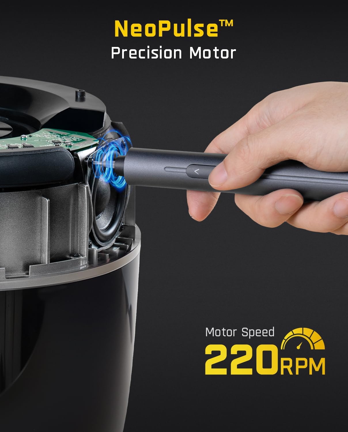 Powerful Torque, Precise Control: The advanced 220RPM motor offers 3 torque settings (0.05/0.2/0.4N.m), providing up to 0.4 N.m in electric mode. The mini electric screwdriver is perfect for working with precision screws, making assembly and disassembly quick and easy without damaging delicate equipment, such like tablets, mobile phones, watches, electronic bracelets.