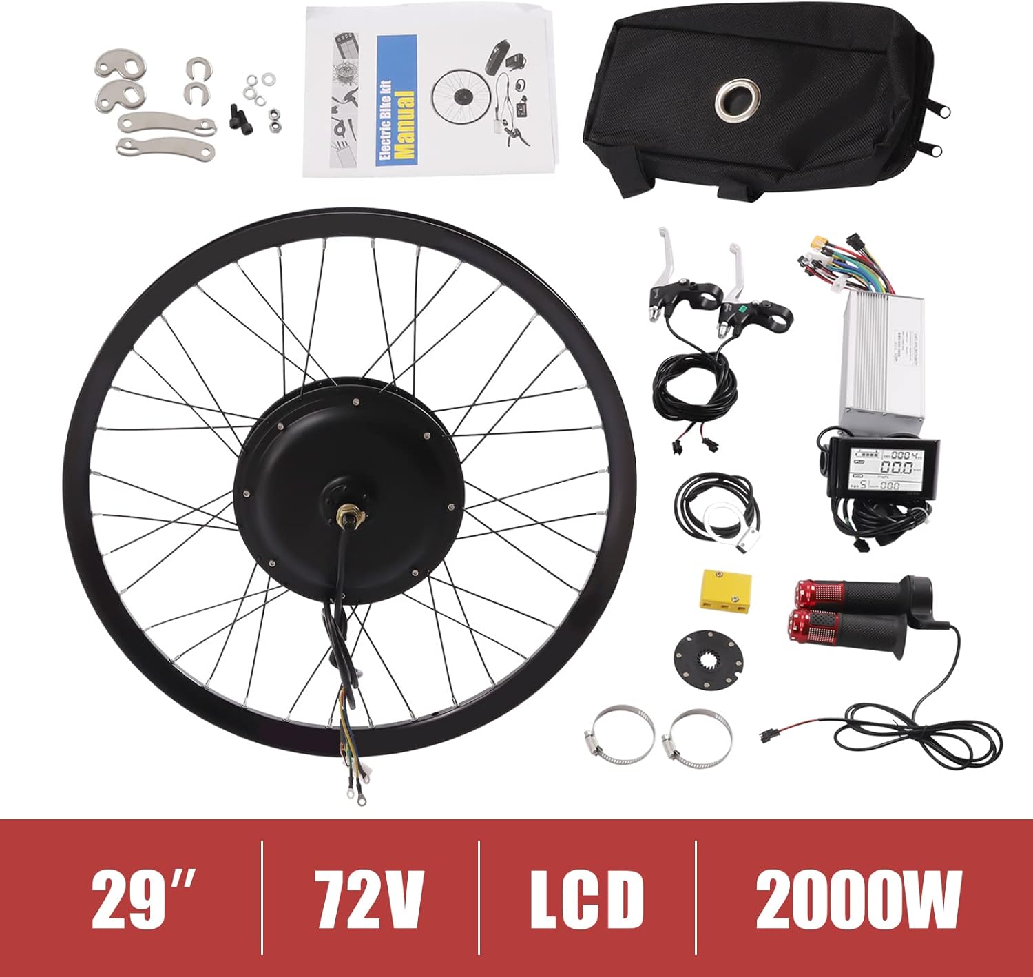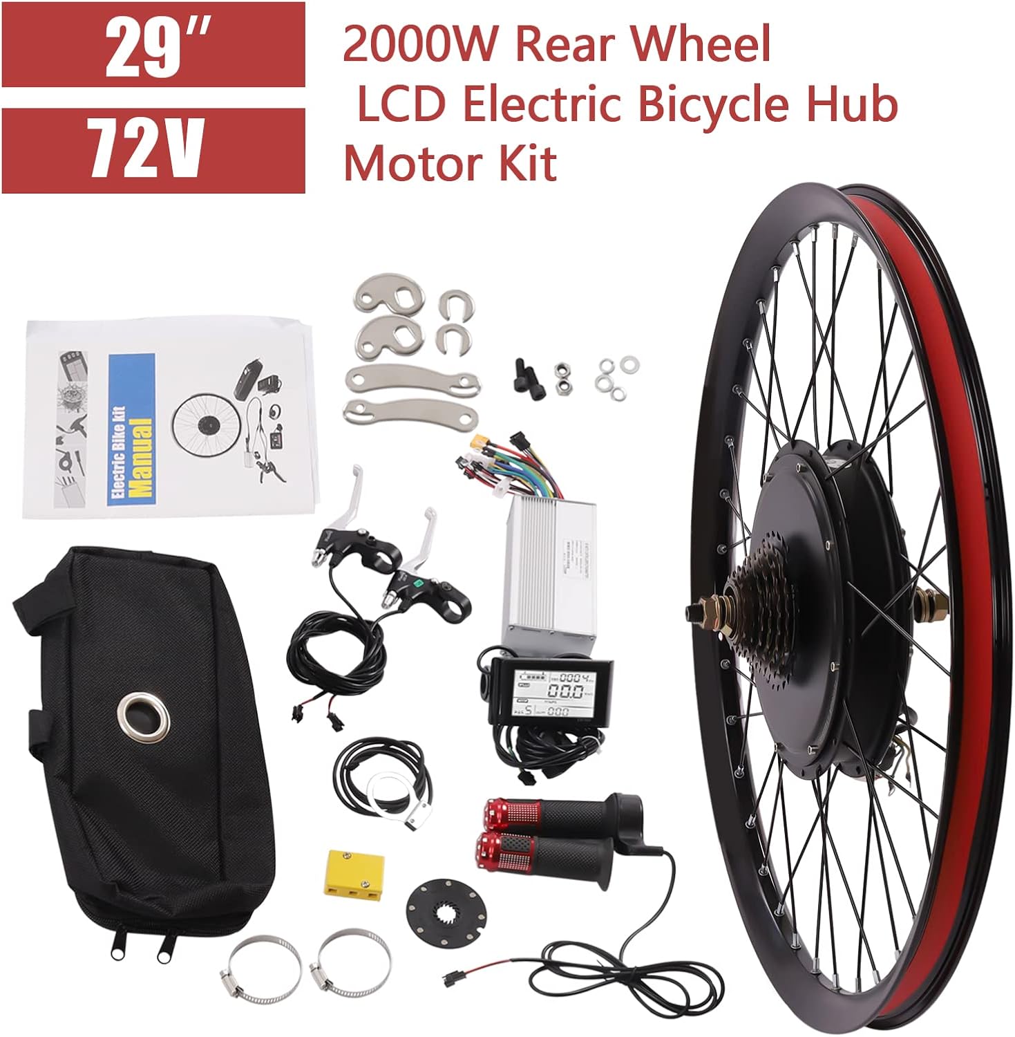 Electric Bicycle Kit, 72V 2000W E-Bike Rear Wheel Hub Motor with Mutifunction LCD Display & Pedal Assistant Sensor, 60N.M 7-Speed Flywheel E-Bike Conversion Set US Stock