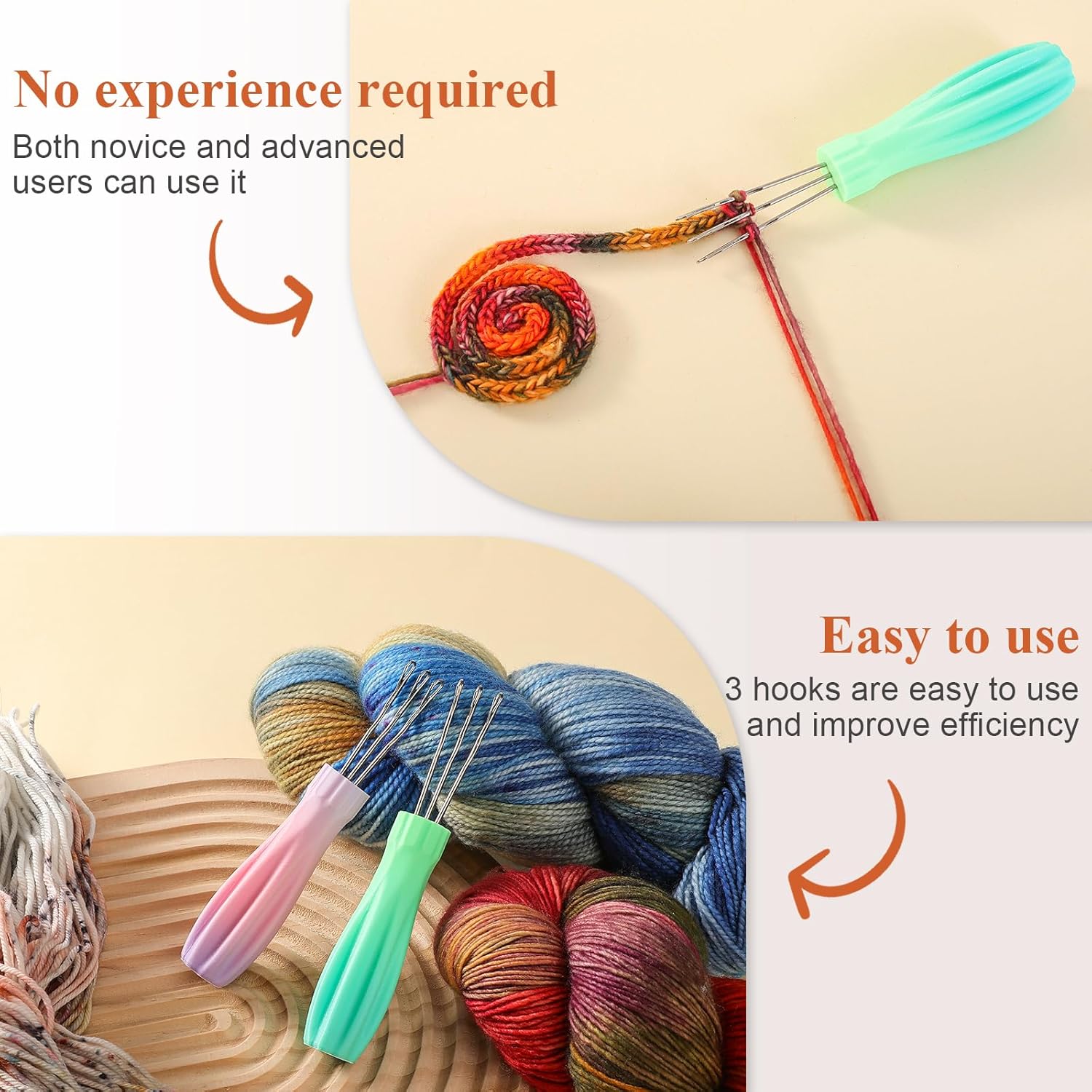 Multifunctional knitting Tool:Unleash your creativity with the 3-Latch Hook Cord Knitting Tool, it used for a variety of knitting techniques, It can Easily create a neat edge, Assist you in weaving work with uniform size and tension, It is the ideal crochet tool for you