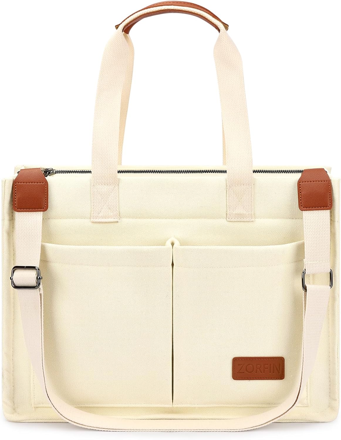 ZORFIN Canvas Tote Bag for Women with Zipper and Compartments Crossbody Work Laptop Bag for Travel College Office