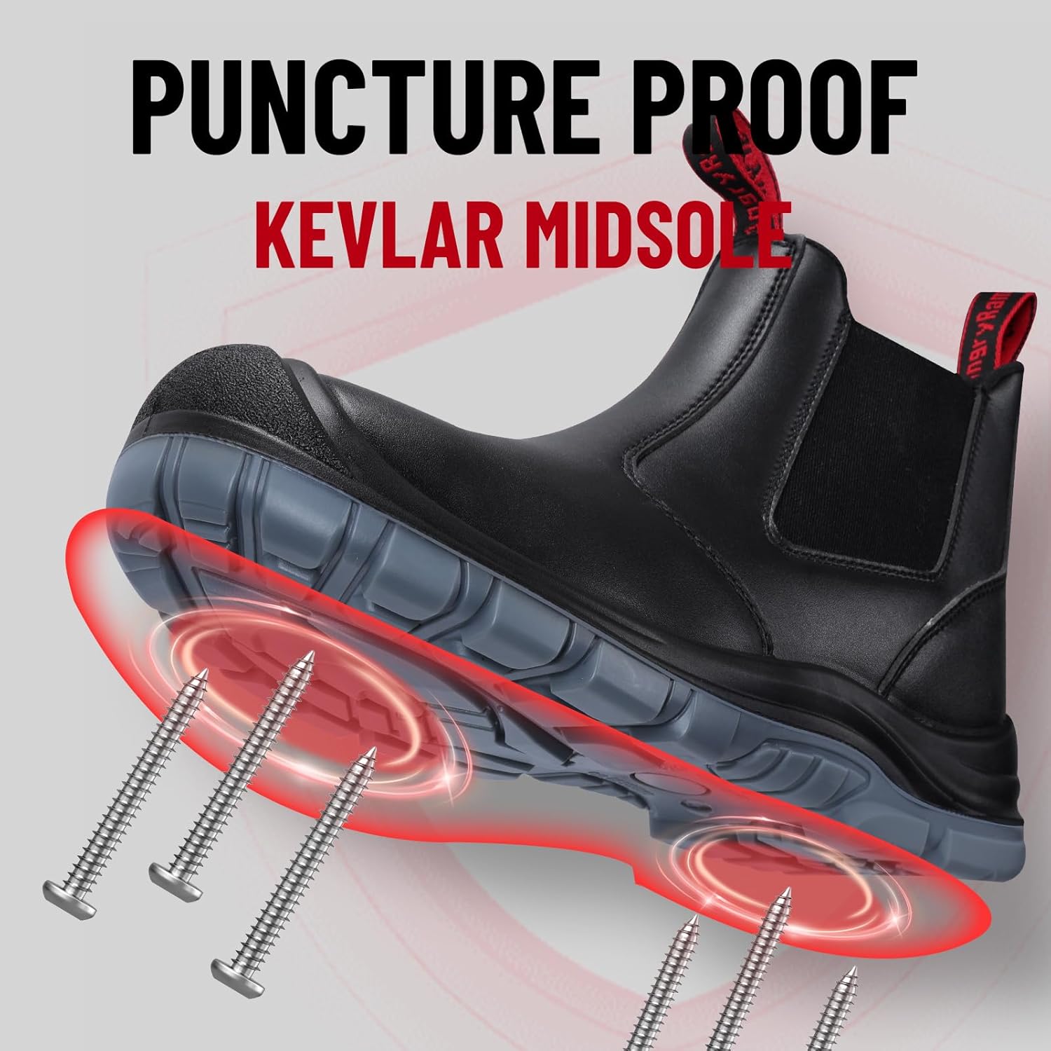 ANGRYRAM Steel Toe Slip on Work Boots for Men Waterproof Slip Resistant Fire Station Mechanic Boots Comfortable Construction Chelsea Safety Shoes