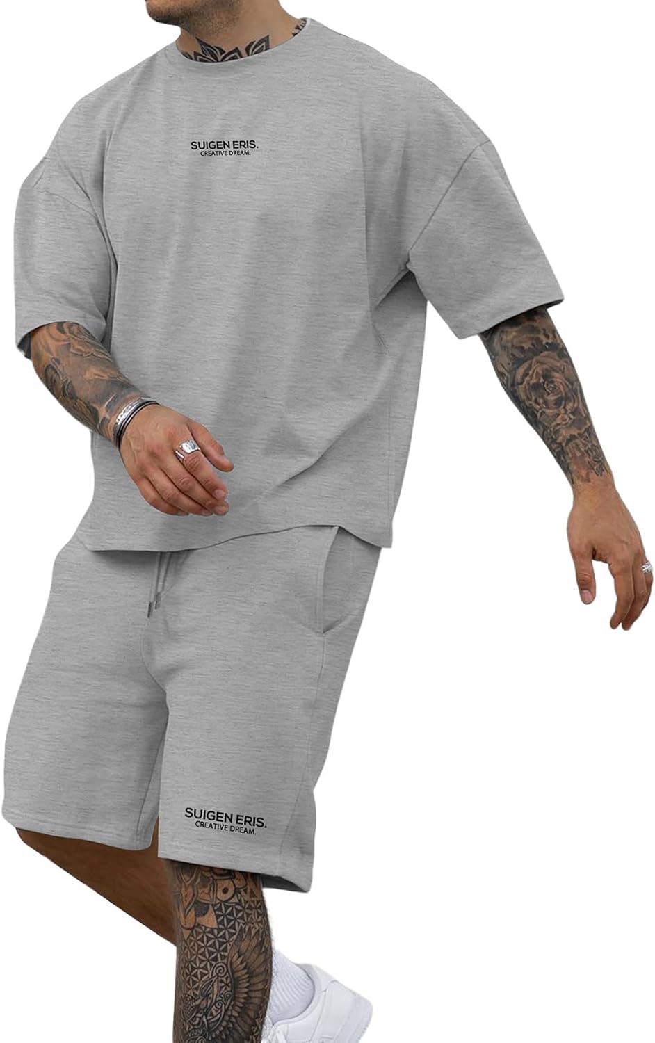 Ryehack Men's 2 Piece Outfits Short Sleeve Crew Neck Summer T Shirt and Drawstring Casual Track Shorts Sportswear Sets