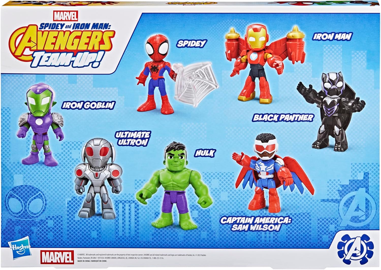 POSEABLE 3-INCH (7.6 CM) MARVEL TOYS: This action figure set includes articulated Spidey, Iron Man, Hulk, Black Panther, Captain America: Sam Wilson, Iron Goblin, and Ultimate Ultron toy figures