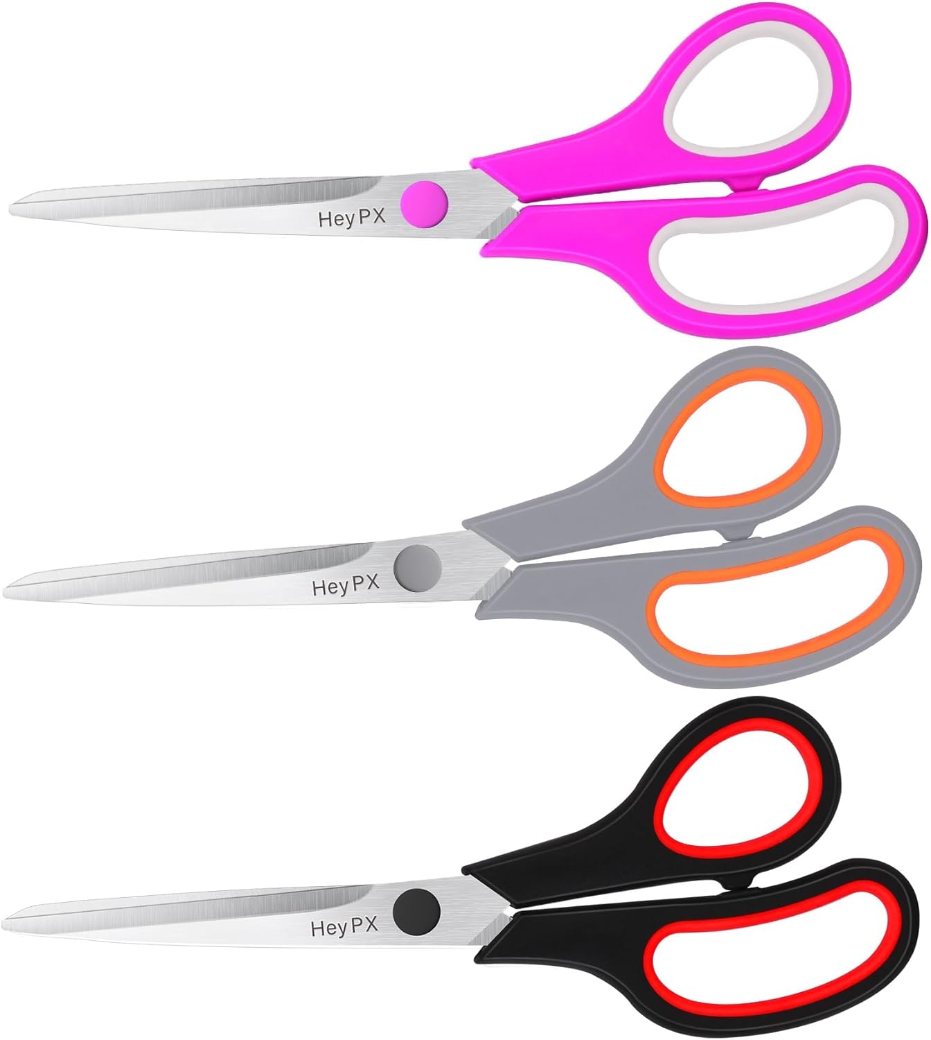8.5" Scissors All Purpose for Office, Home, School, Sewing, Fabric and Crafts, Stainless Steel Heavy Duty Scissors with Ultra Sharp Blades and Comfort Grip Handles, 3 Pack, Multicolor