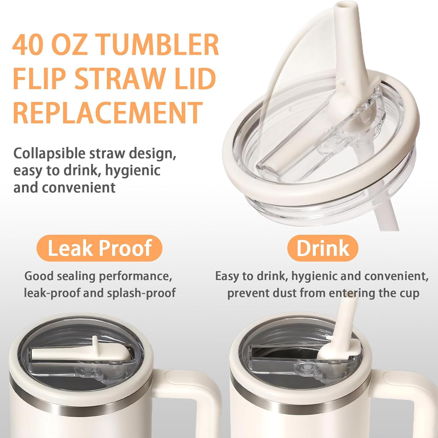 Convenient Flip Straw: For 40 oz stanley lid replacement, collapsible straw design, easy to drink, hygienic and convenient, 100% leak proof, you can drink anytime during sports or travel, and it can effectively prevent dust from entering the cup, allowing you to enjoy the drink with peace of mind