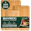 Bamboo Cutting Board For Kitchen (3 Pcs) – Durable Wooden Cutting Board Non Toxic – Chopping Boards For Kitchen With Deep Juice Groove And Built-in Handles, Ideal Charcuterie, Meat, Vegetables