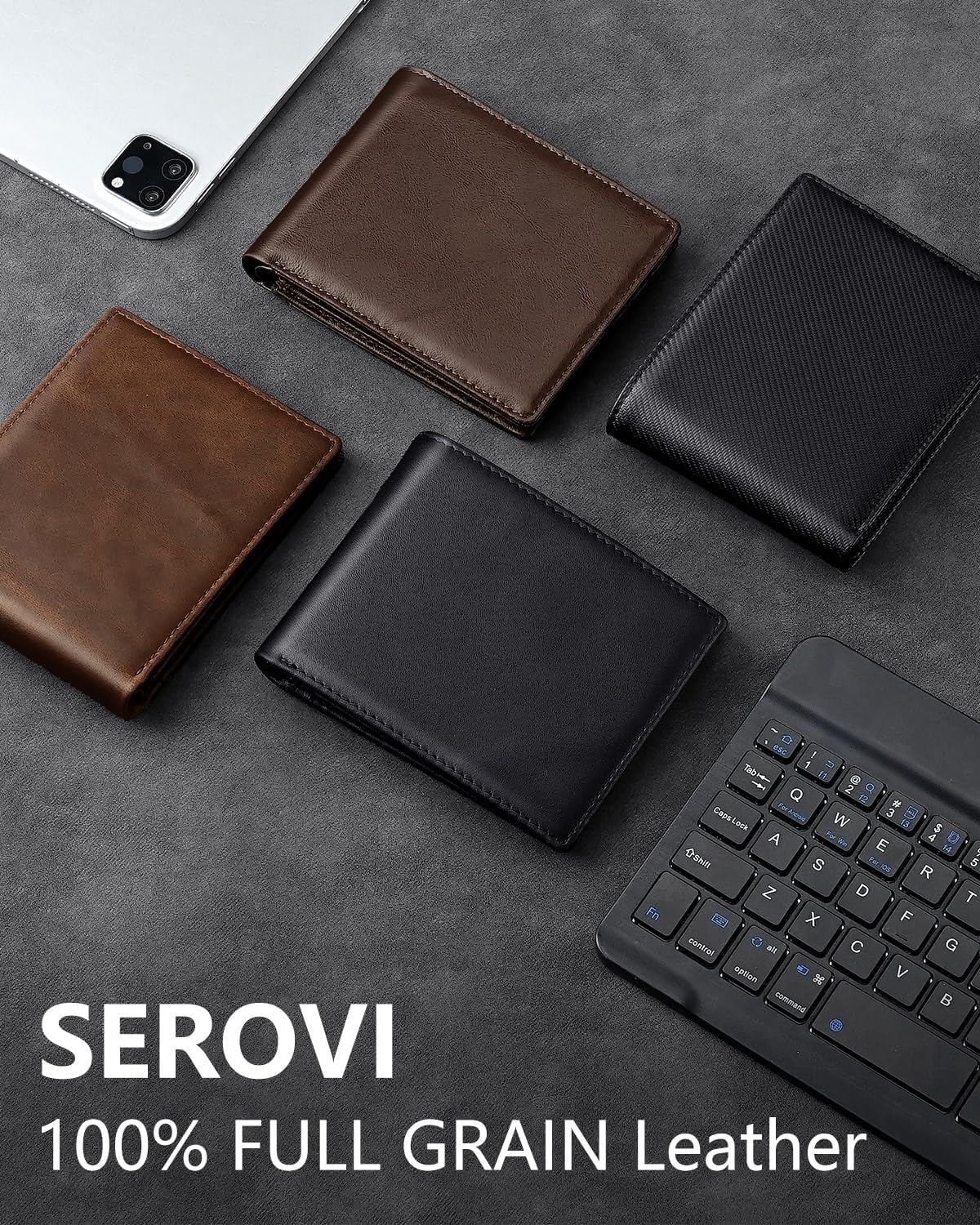 Advanced RFID Protection:Serovi mens wallet leather builts-in shielding blocks 99% of RFID scans, securing cards in this wallet for men against digital theft while allowing easy access to frequently used cards.