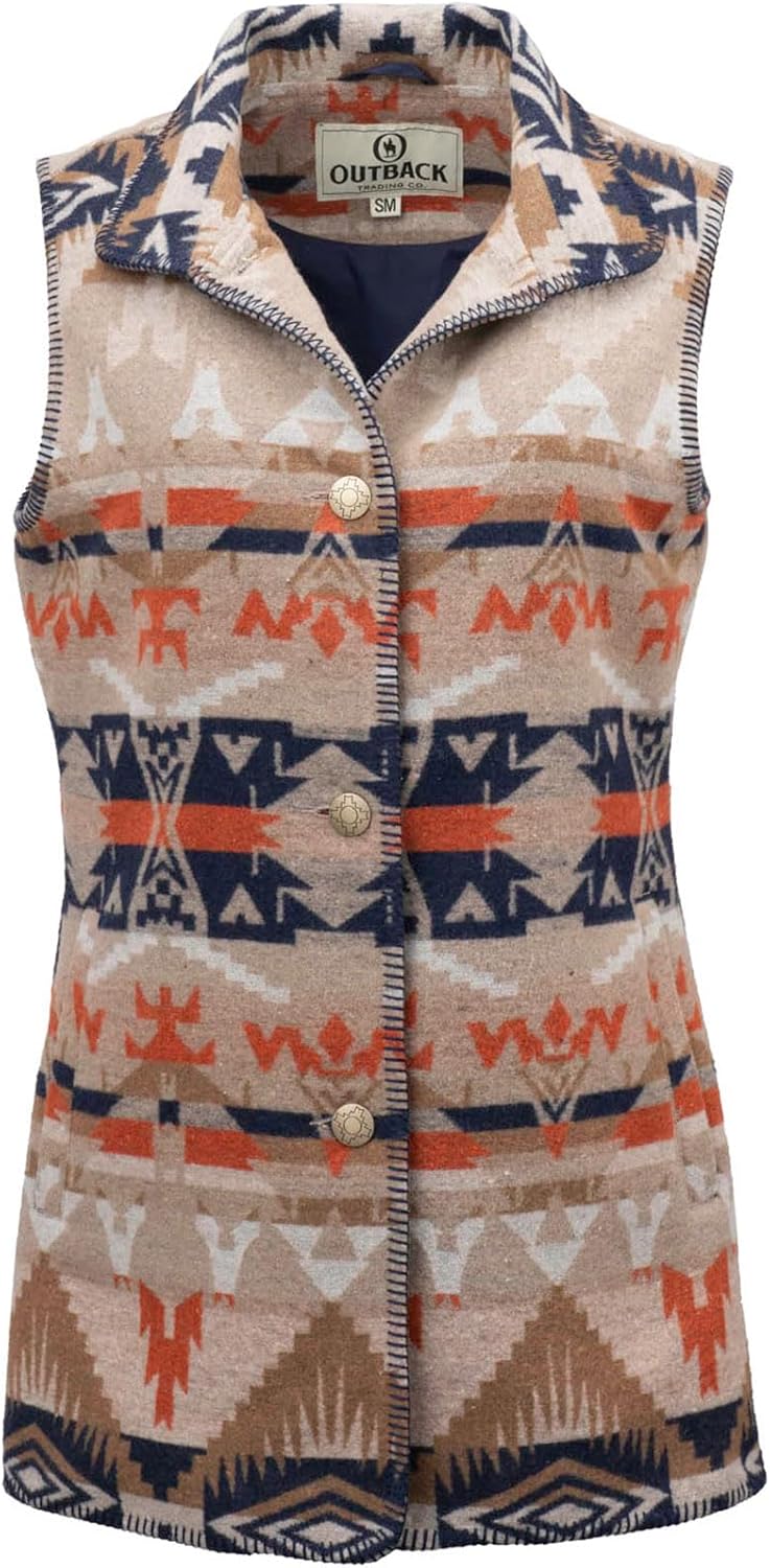 Outback Trading Company Women's 29655 Stockard Western Casual Fashion Warm Taffeta Lined Button Down Extended Vest w/Pockets