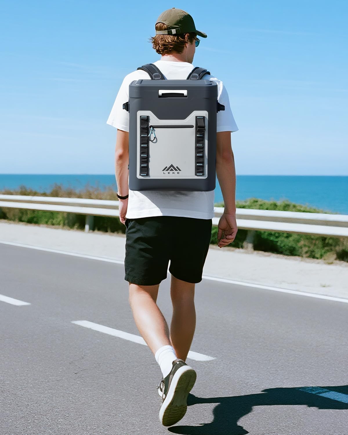 PORTABLE DESIGN: Ultra-light build (just5.62 lbs) with padded, adjustable shoulder straps. Breathable back panel prevents sweating. Frees hands for gear or kids—easier to carry than bulky hard coolers during hikes, bike rides, or walks