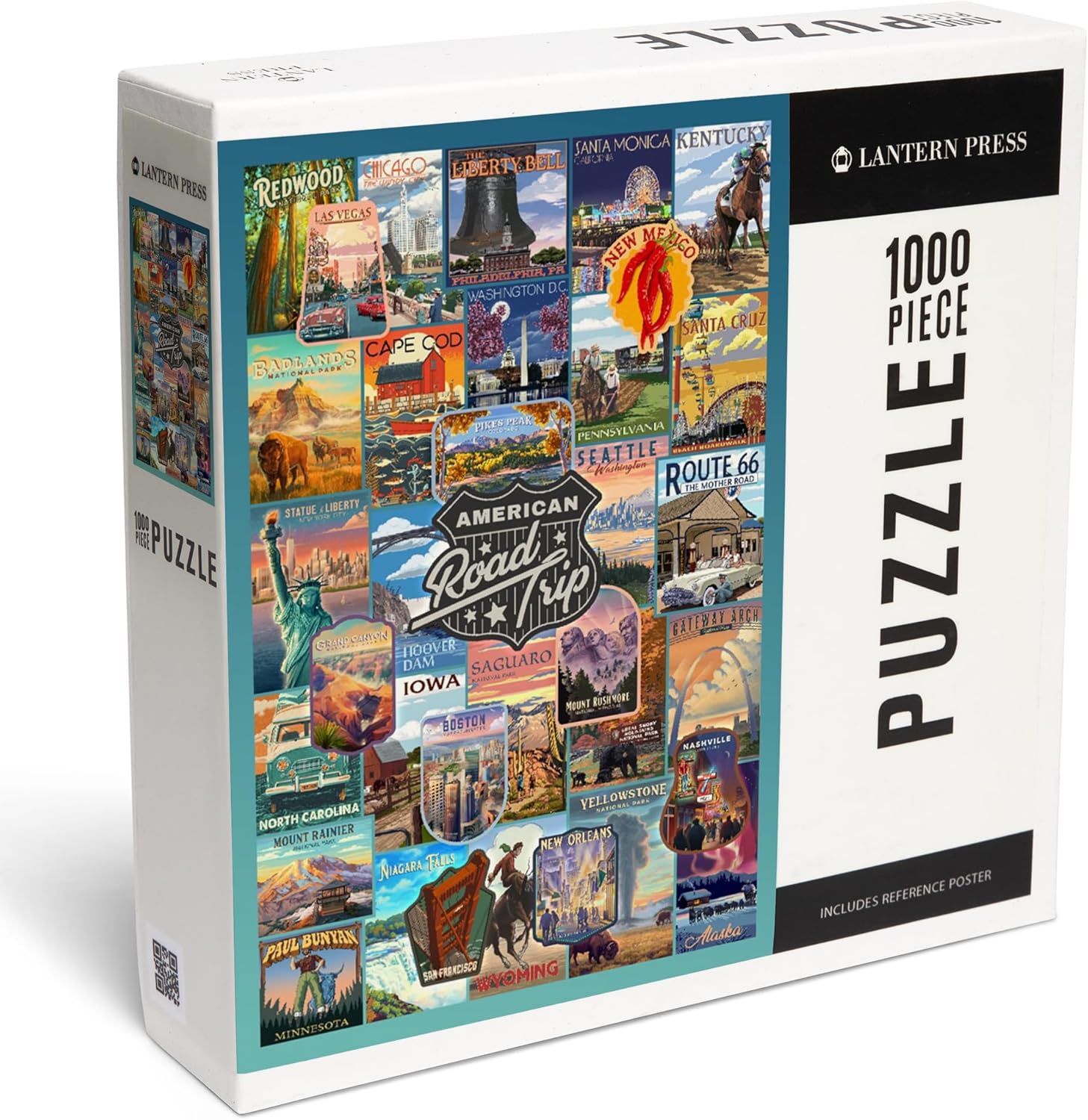 18.5 x 27.75 inches Lantern Press 1000 Piece Jigsaw Puzzle, American Road Trip, Collage