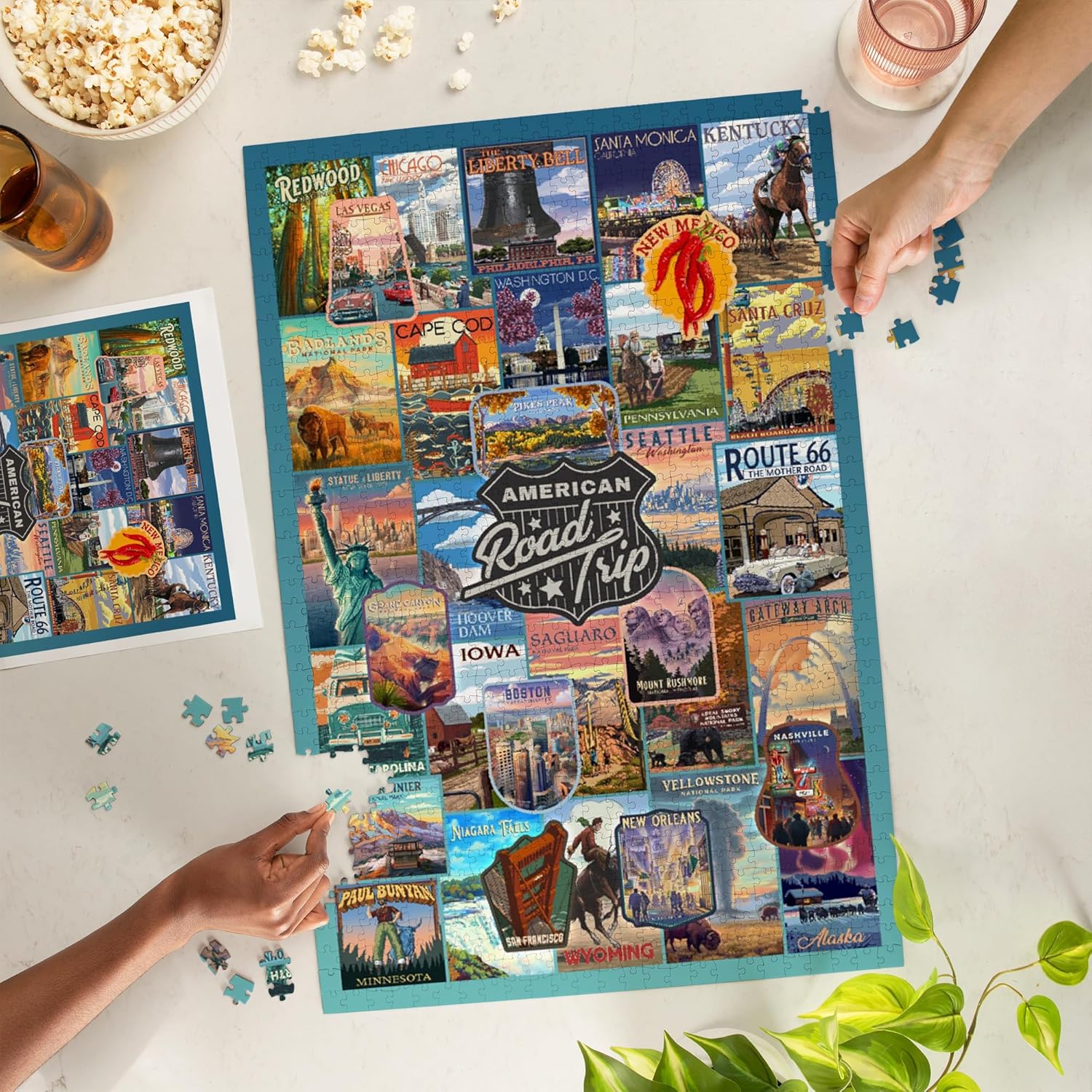Lantern Press 1000 Piece Challenging Jigsaw Puzzle, American Road Trip, Collage