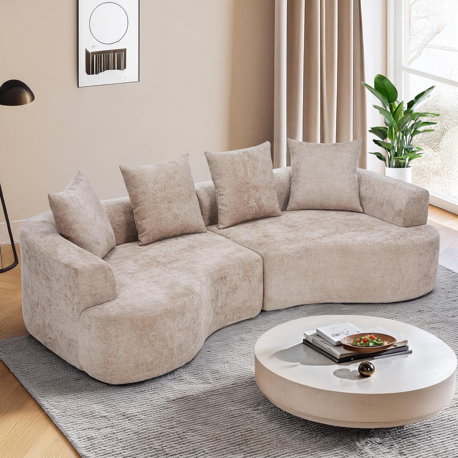 NO ASSEMBLY REQUIRED- The curved sectional sofa features fully compressed design. Simply unpack the vacuum packaging, patting to rebound it and get modern as well as minimalist couch effortlessly. Full recovery may take up to 72Hrs
