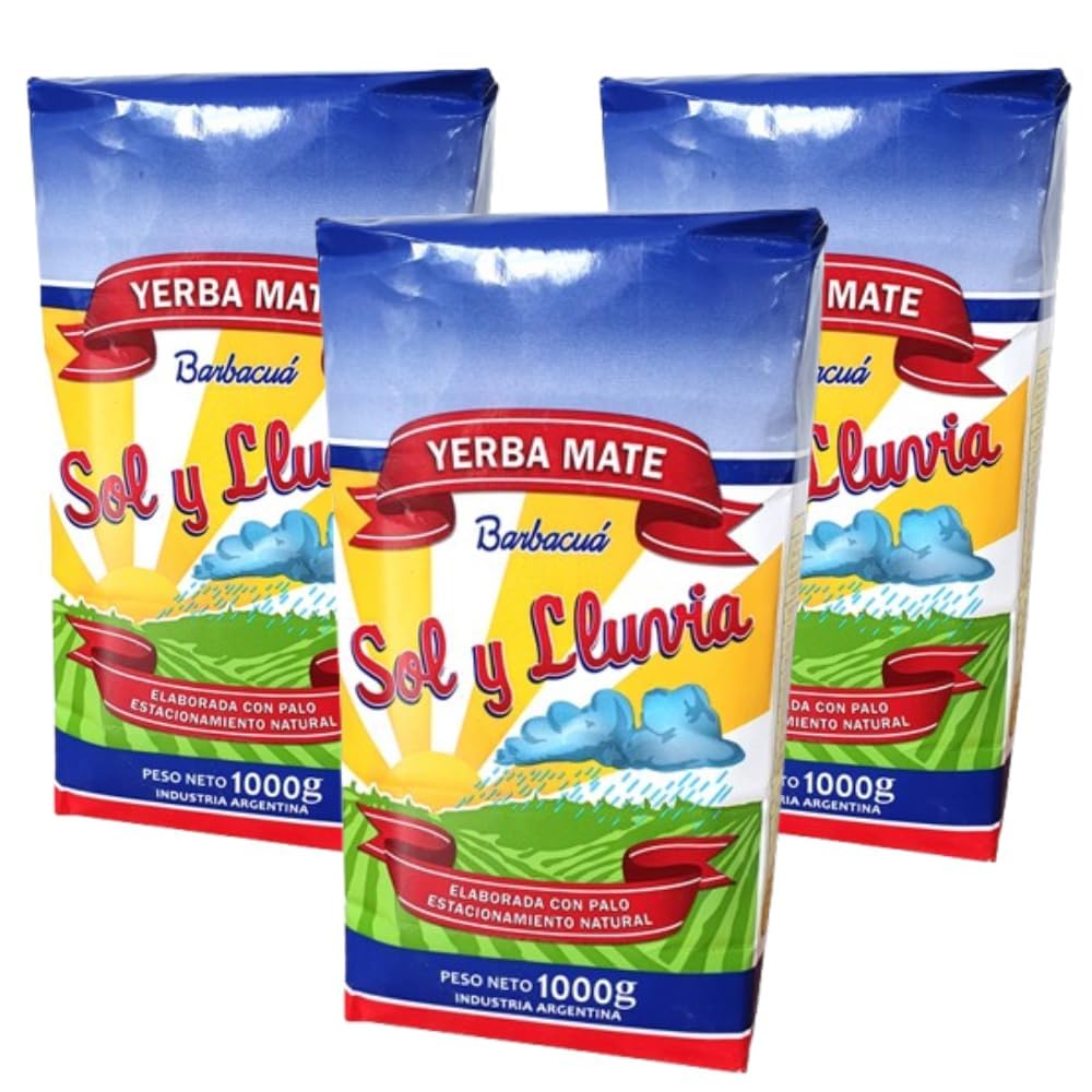 3-Pack Sol y Lluvia Yerba Mate Traditional Barbacuá, 1 kg /2.2 lbs each bag
