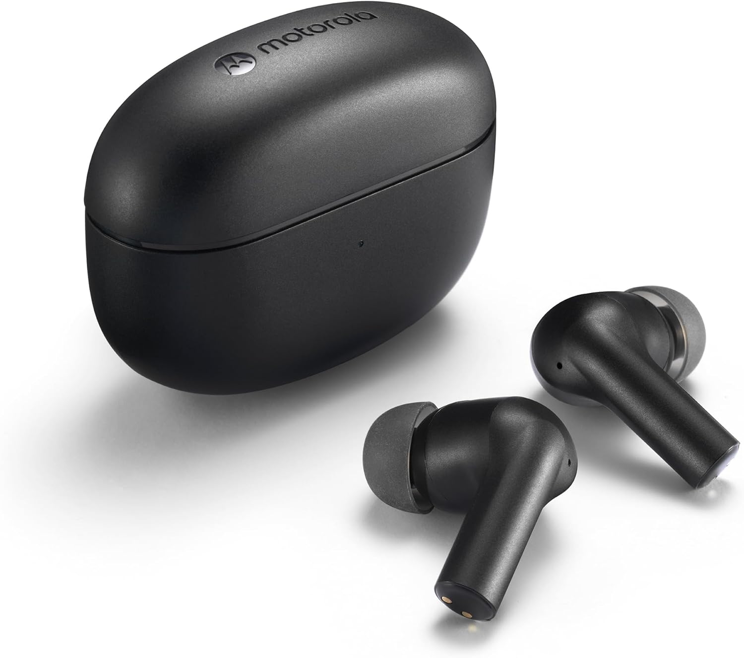 Motorola Sound Moto Buds 500 ANC True Wireless Earbuds, IPX4 Water Resistant Touch Control Ear Buds with Dual Noise Cancelling Microphone, Charging Case, Black