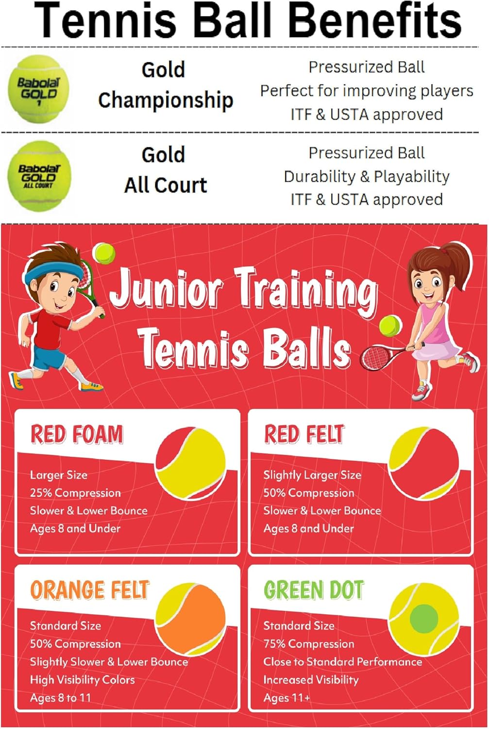 OPTIONAL ACCESSORIES: The Jr Backpack is a versatile bag sized specially for ages 3–8. It holds 1 racquet and can be used on and off the court. The Court Hero Backpack holds 2 racquets. The Pure Drive Backpack carries 3 racquets, as well as a laptop. The Court M Bag carries 6 racquets. Choose a pressurized or training ball to help improve your game. Grips extend the life of your racquet and include tape for easy application.