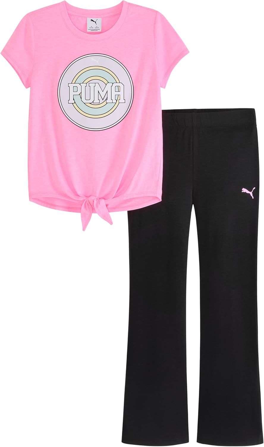 PUMA girls Short Sleeve Tee & Legging Set, Logo Graphics, Crewneck