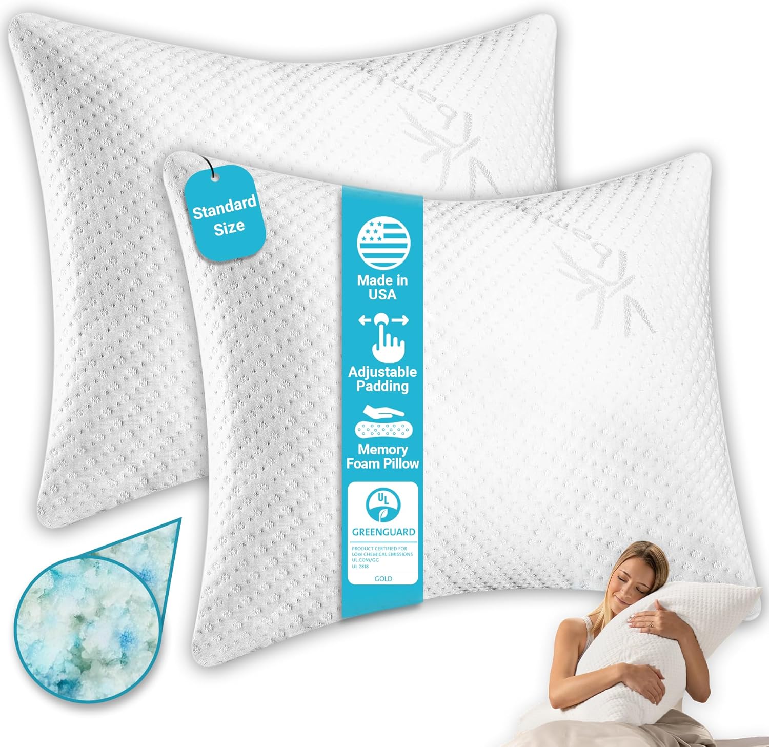 [Cool Flow] These pillows standard size set of 2 have a removable cover made with micro-vented rayon originally derived from bamboo that promotes airflow, a top choice for those seeking full size pillows that enhance nightly comfort with cooling pillow