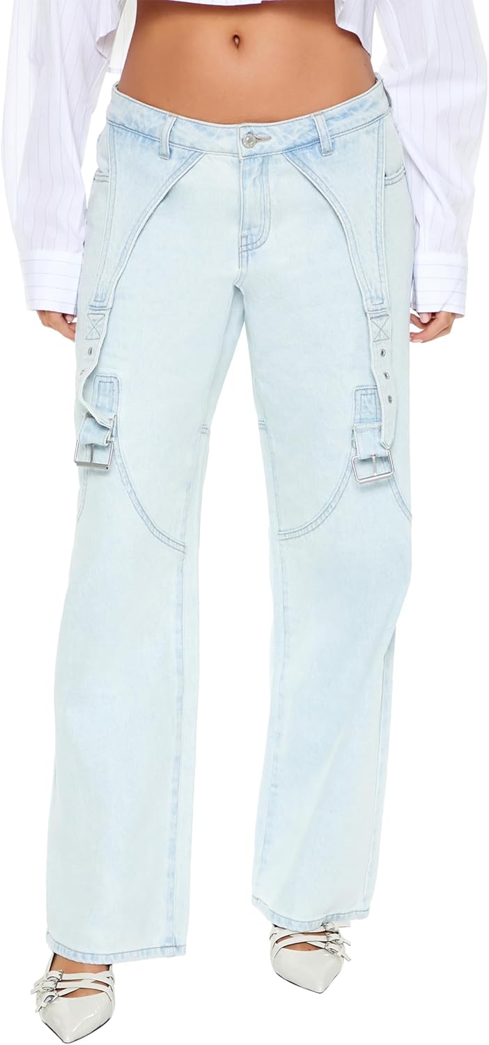 Forever 21 Women's Buckled Low-Rise Baggy Jeans