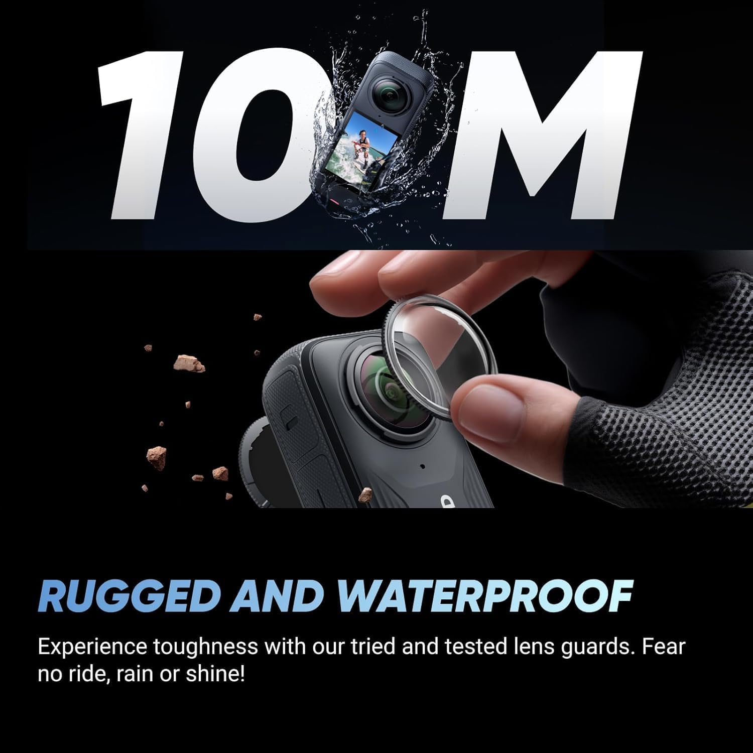 POCKET-SIZED 360 VIDEO With an upgraded sensor and larger touchscreen, the Insta360 X4 is capable of capturing high definition 360 degree and single-lens video with one portable action camera. The X4 offers an action-ready design with AI-powered software for an intuitive approach to creating dynamic content in any environment. Its rugged IPX8 design is natively waterproof up to 33 feet and has a built-in rechargeable 2290mAh battery for increased shooting time. 8K 360 VIDEO, 4K SINGLE-LENS MODE Dual 360 lenses on the X4 can capture up to 8K video and 72MP photos with ease. You can switch to single-lens shooting and record 4K video at up to 30 fps. For extremely wide-angle 170° shots, turn on MaxView mode with 2.7K resolution.