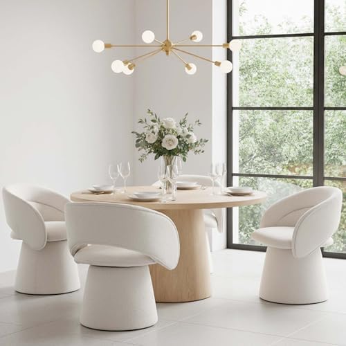 HNY Swivel Barrel Upholstered Dining Chairs Set of 4, Mid Century Modern 360 Degree Comfy Accent Armchairs with Round Open Back, Makeup Vanity Side Chairs for Bedroom Living Room, Chenille, White
