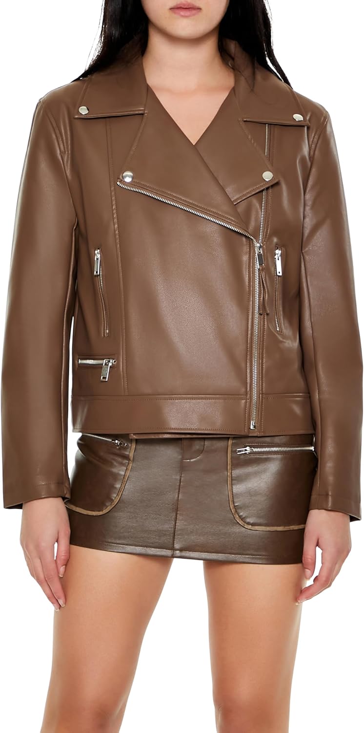 Forever 21 womens Faux Leather Zip-up Moto Jacket