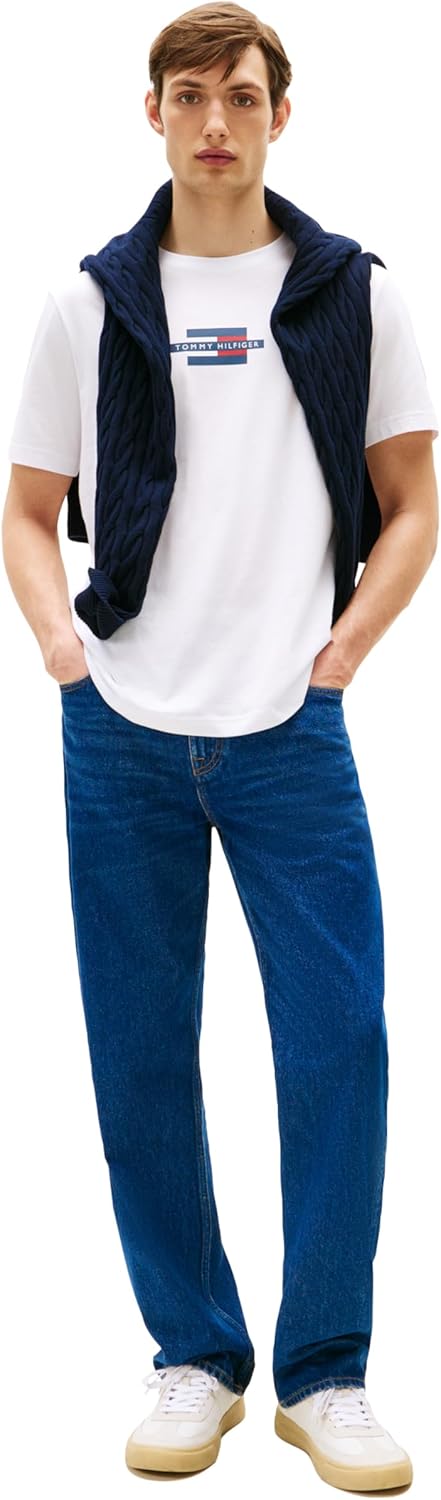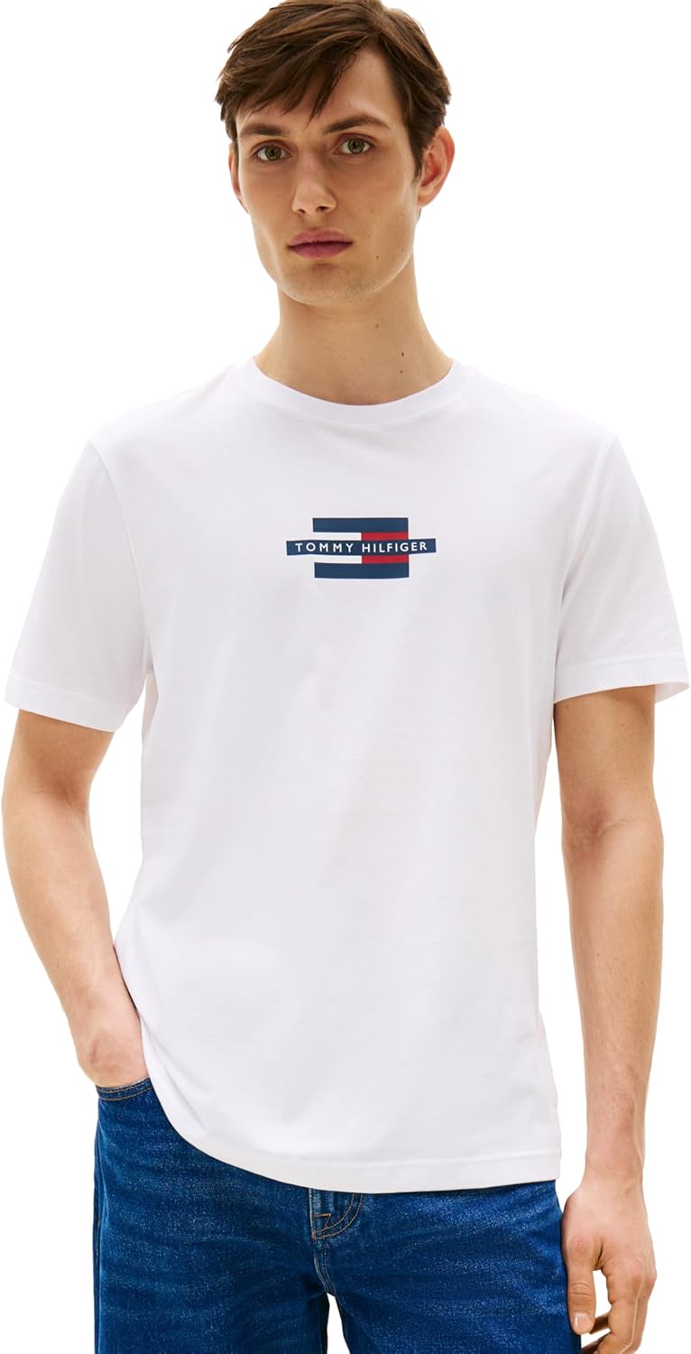 Introducing Tommy Hilfiger's iconic men's t-shirts, featuring the signature graphic and crafted from 100% cotton for a soft hand feel and comfortable fit. These graphic tees are the epitome of everyday style, perfect for effortlessly elevating your casual look. Durable enough to withstand serious wear, Tommy Hilfiger's graphic t-shirts for men are breathable, crisp, and lightweight, ensuring you stay cool and comfortable every time you slip them on. The special wash process gives these crewneck graphic tees their softness, making them a solid basic option for any wardrobe. Pair them seamlessly with your favorite Tommy Hilfiger shorts, pants, jeans, or jackets for versatile styling options suitable for any occasion, whether it's a casual outing or a formal event. Ideal for daily wear, work, school, events, vacation, or sports, these men's shirts are a wardrobe essential. Treat yourself or surprise a loved one with this timeless piece, perfect for fathers, brothers, boyfriends, husbands, sons, or friends. Elevate your everyday style with the unbeatable quality and sophistication of Tommy Hilfiger's men's t-shirts.