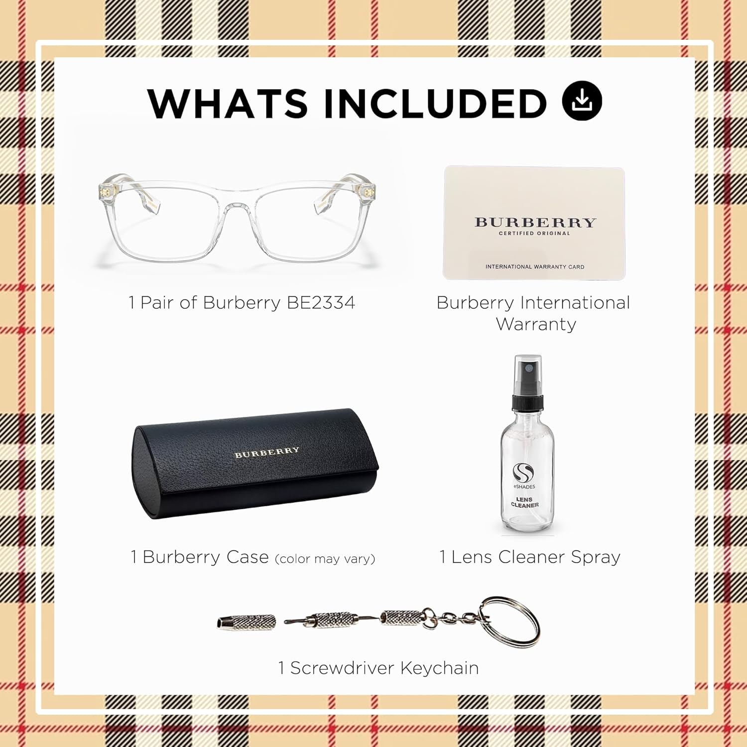 BURBERRY ELM BE2334 Rectangle Shape Acetate Eyeglasses with Luxury Eyewear Kit