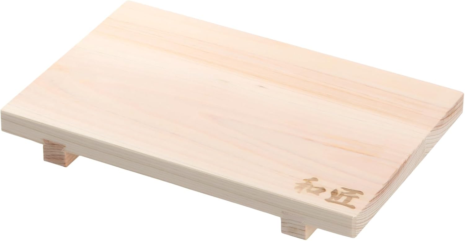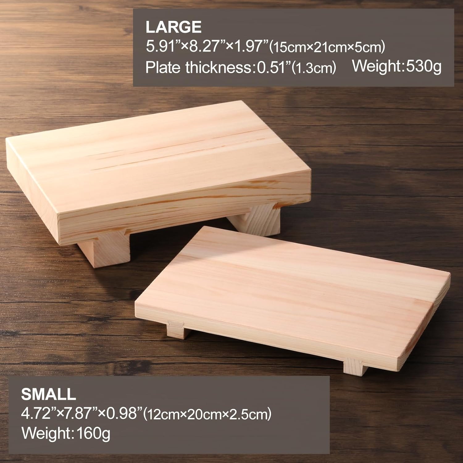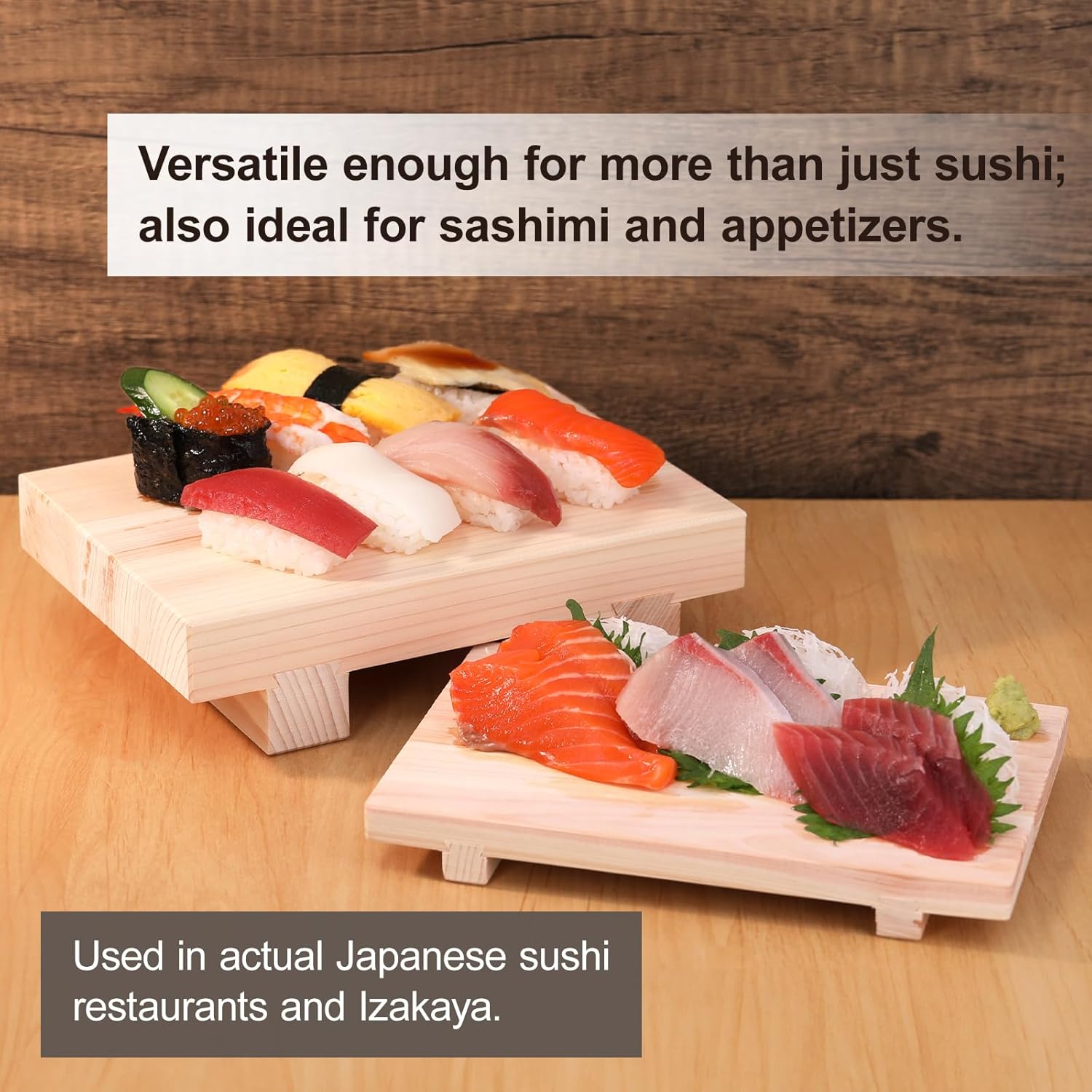 WASHO Hinoki Japanese Cypress Sushi Serving Geta Board Made in Japan (Small with Logo (4.7" × 7.9" × 1"))