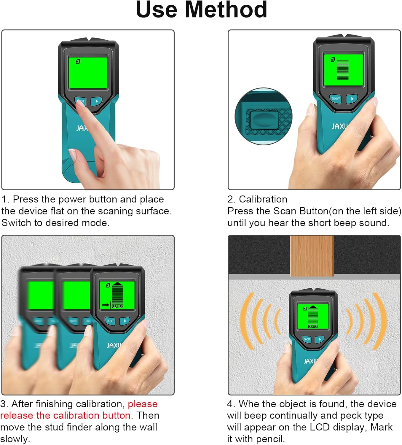 Wide Use: our wood detector for wall is a versatile, reliable, and tool that can make any job more efficient and effective. This stud detector quickly locates wood, metal, and AC wires hidden in the walls, floors, and ceilings of the house. Helping you avoid danger when hanging and installing TV mounts photo frames, wall cabinets, garage racks, shelves, bathroom handles and other decorations. Give the gift of convenience and comfort with this practical gadget