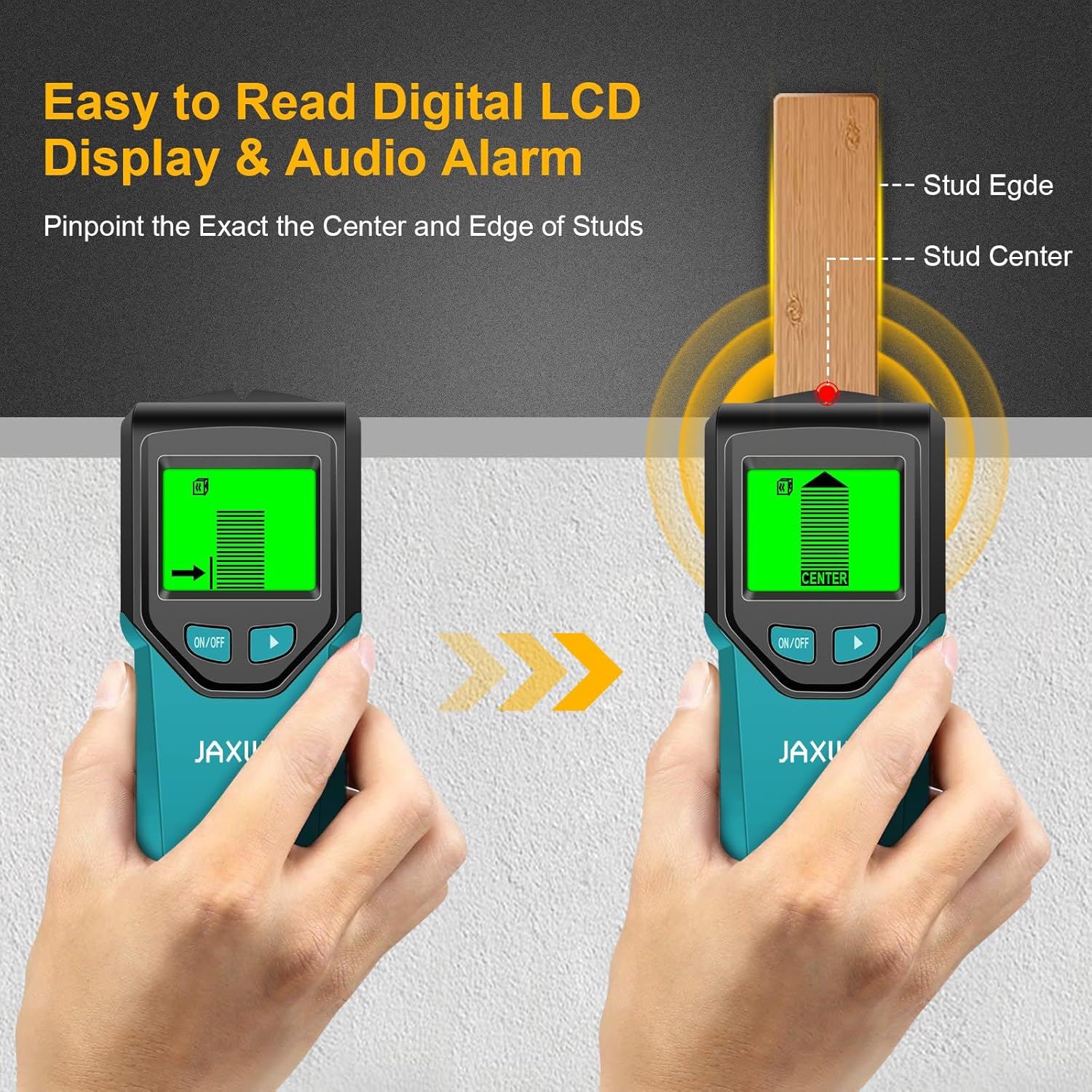 High Visibility and LCD Display: Our stud scanner is equipped with a bright, backlit LCD display that shows the center, edge, and location of detected studs, as well as the battery status. Along with the visual display, our stud finder also provides audio alerts and a beep sound to help guide you to the exact location of the stud. The comprehensive display makes it easy for anyone to use, even in low-light settings. It’s the perfect tool gifts for any DIY enthusiast