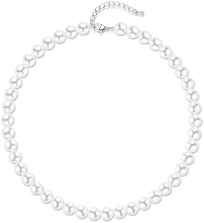 Aleasha Faux Pearl Strand 4mm-10mm 14"-22" White Pearl Necklace Choker Women Men Wedding Jewelry